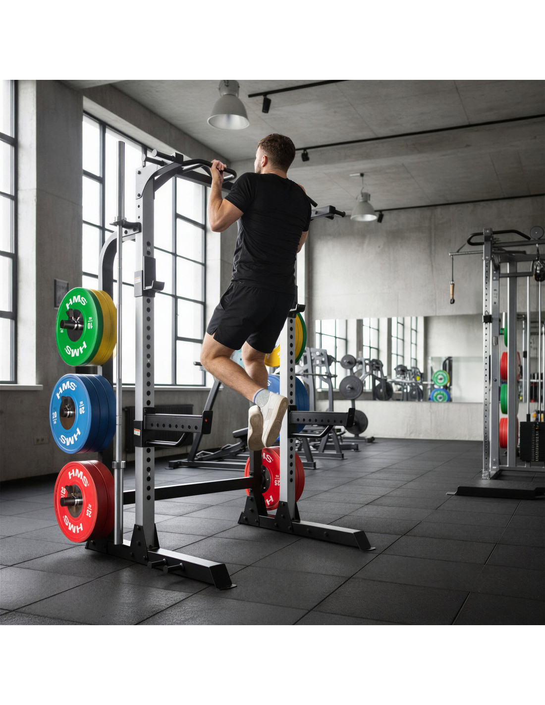 Тренировъчната стойка HMS Fitness KLT5432 е здрава половин стойка, която предлага максимална свобода на движение за силови тренировки в компактен размер. Идеална за домашни фитнес зали, студиа за лични тренировки или зони за функционални тренировки - проектирана за безопасност, стабилност и интензивни силови тренировки.