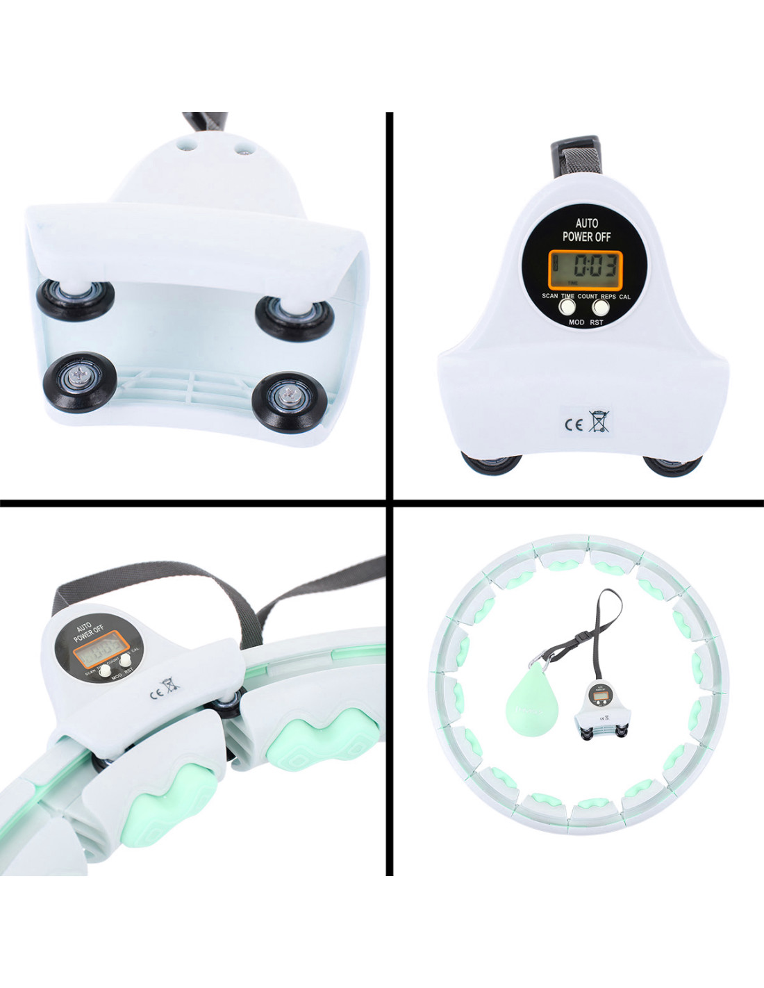 Man kann schnell und bequem die Größe des Reifens verkleinern oder vergrößern. Es reicht nur, Elemente entsprechend den Bedürfnissen zu entfernen oder hinzuzufügen. Die Größe kann man zwischen 12 und 16 Elementen einstellen. Der Taillenumfang kann dementsprechend von 76 cm bis zum 109 cm betragen (Durchmesser des Kreises: 34 - 45 cm).