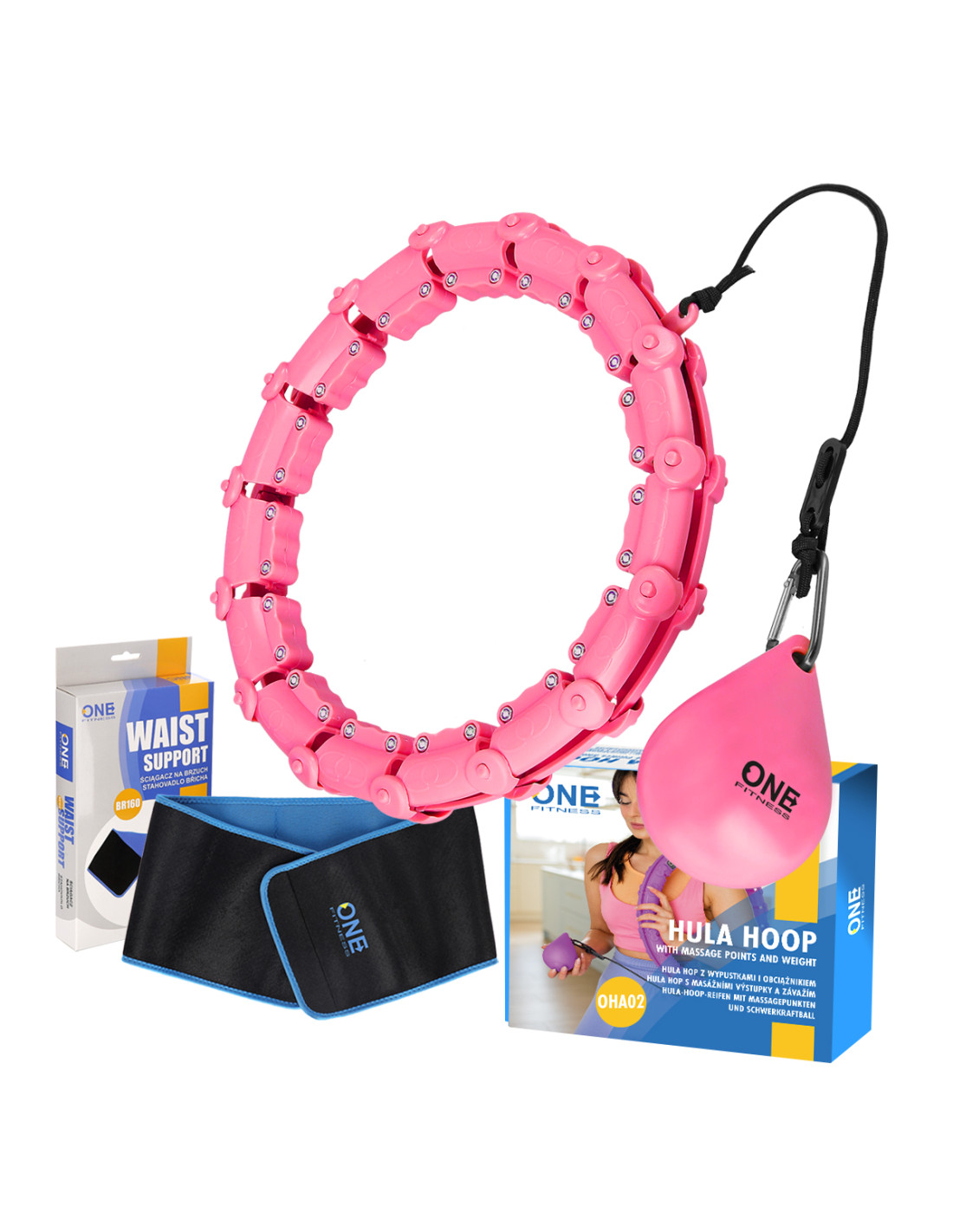 SET OHA02 PINK HULA-HOOP-REIFEN MIT MASSAGEPUNKTEN UND SCHWERKRAFTBALLL + SLIMMING-GÜRTEL BR160