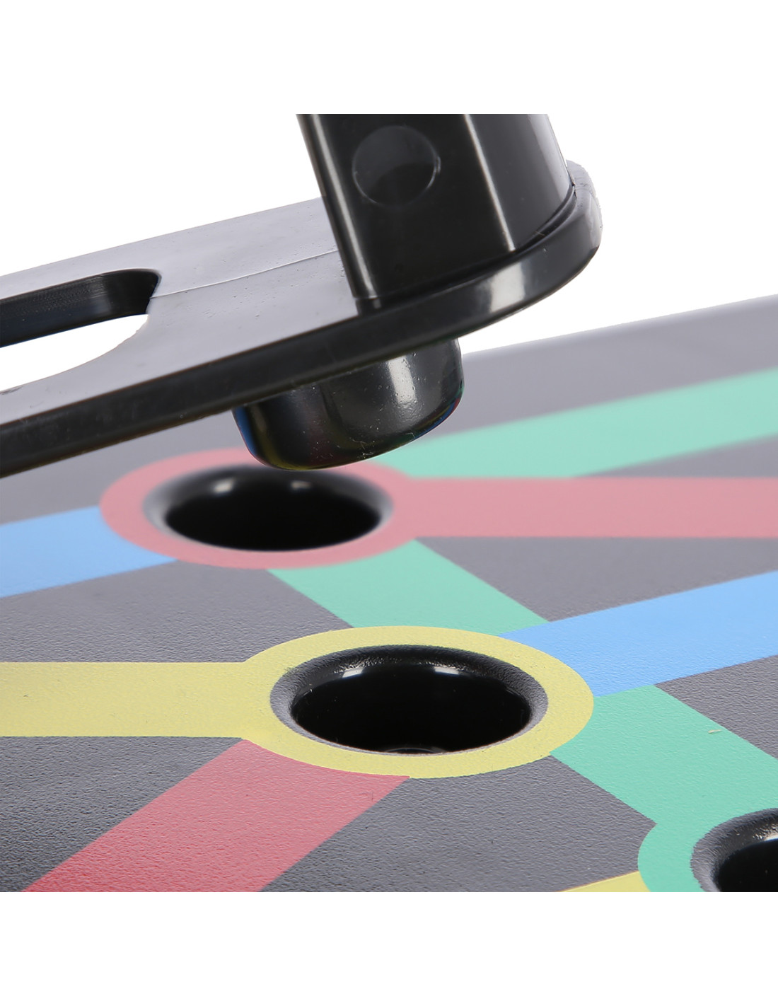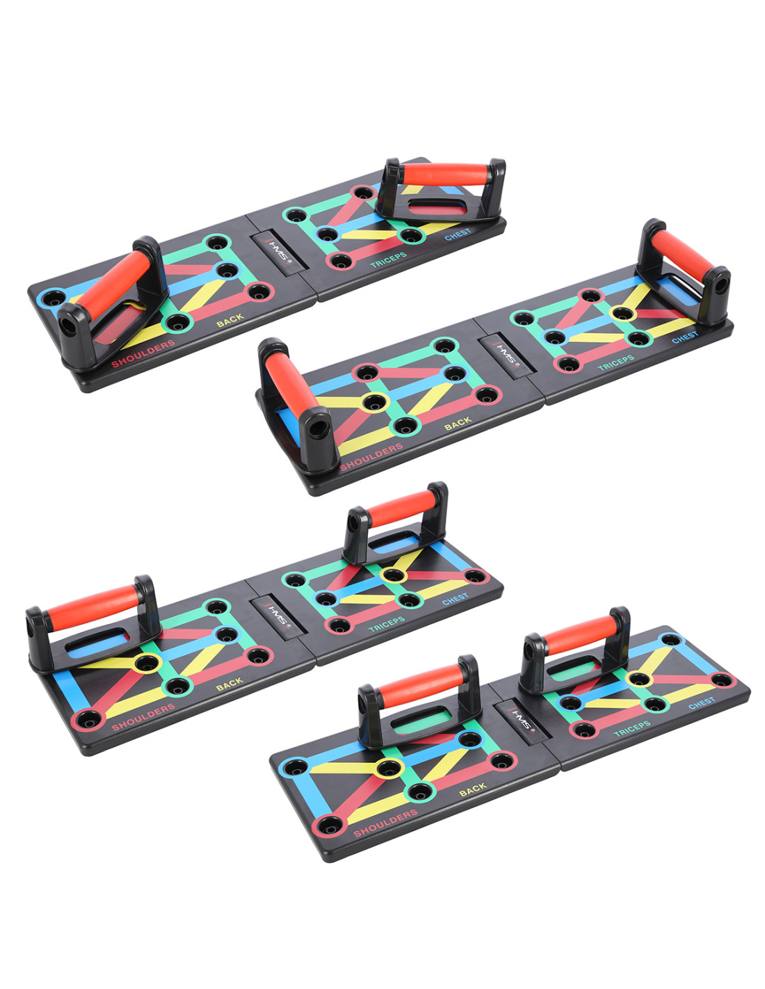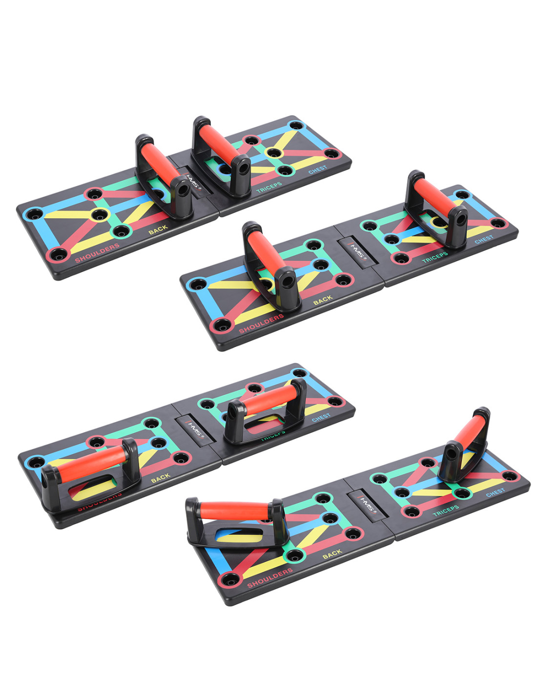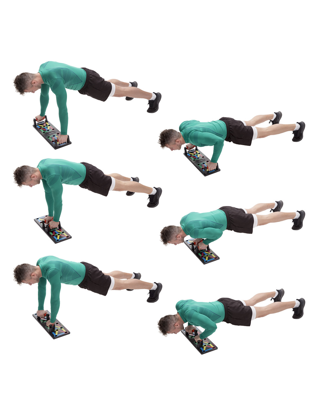 Използвайки тази дъска за лицеви опори, можете да тренирате почти цялата си горна част на тялото. Това може да се постигне чрез регулиране на дръжките в желаната позиция. Всяка корекция ви позволява да се насочите към различна мускулна група или към същия мускул, но работата на този мускул ще бъде различна. Това прави тренировката по-сложна. С тази дъска за лицеви опори можете да изпълнявате упражнения за гръдните мускули, трицепсите, раменете и мускулите на гърба. Всяка мускулна група е маркирана с различен цвят на дъската. Значението на цвета е описано по такъв начин, че смяната на позициите по време на тренировка може да бъде много бърза и лесна.