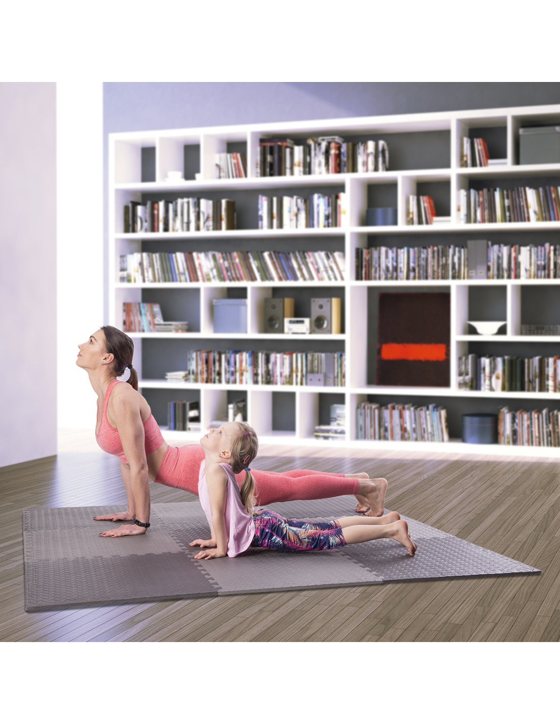 Подложката за пъзел има широка гама от приложения. Позволява ви да изпълнявате неограничен брой фитнес упражнения у дома, като йога, силови тренировки, тренировки със собствено тегло, тренировки с дъмбели и щанги и тренировки с кростренажор. Може да се използва и за неограничено семейно забавление или при сглобяване на мебели. Тази постелка повишава комфорта на потребителя. Той не само предпазва потребителя от нараняване, но и предпазва пода от повреда. Освен това функционира като звукопоглъщаща постелка, намалявайки шума, причинен от упражнения. Системата "пъзел" позволява постелката да се сглобява както желаете. Дълбокото заключване осигурява стабилността на многоелементната структура.