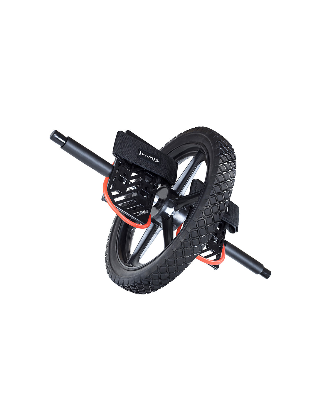 Тази коремна ролка разполага със здрава джанта и гума. Гумата е изработена от материал, характеризиращ се с отлично сцепление. Формата на протектора, съчетана с неговата еластичност, помага за предотвратяване на надраскване на повърхността на коремната ролка. Стабилността на потребителя се осигурява от дръжки с велкро закопчалки.