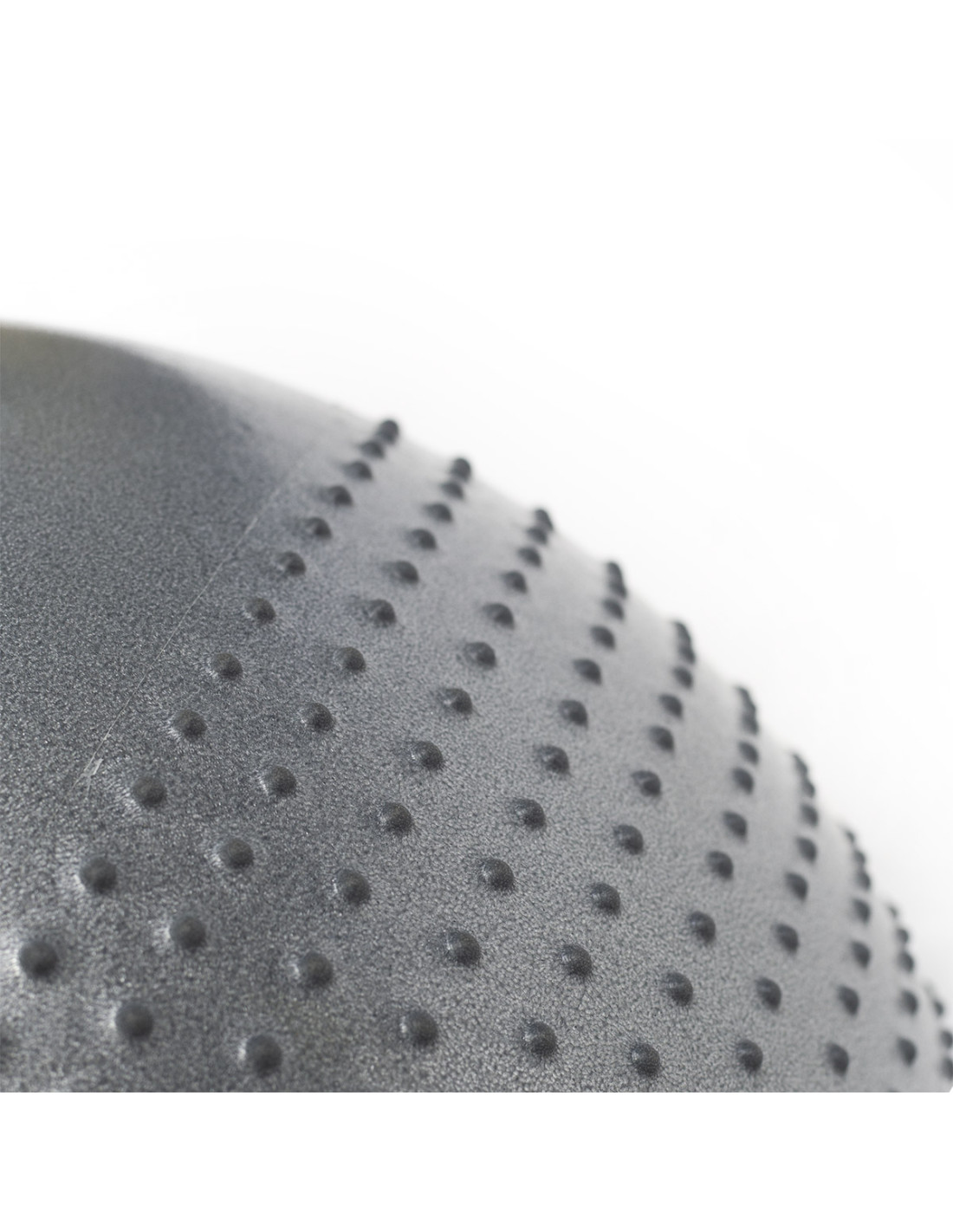 Специалната структура на топката за упражнения предпазва тялото ви от подхлъзване по време на тренировка. Едната половина на топката е покрита с издатини, което спомага за бързото възстановяване на мускулите. По време на тренировка издатините естествено масажират тялото ви, облекчавайки болката, причинена от микронаранявания.