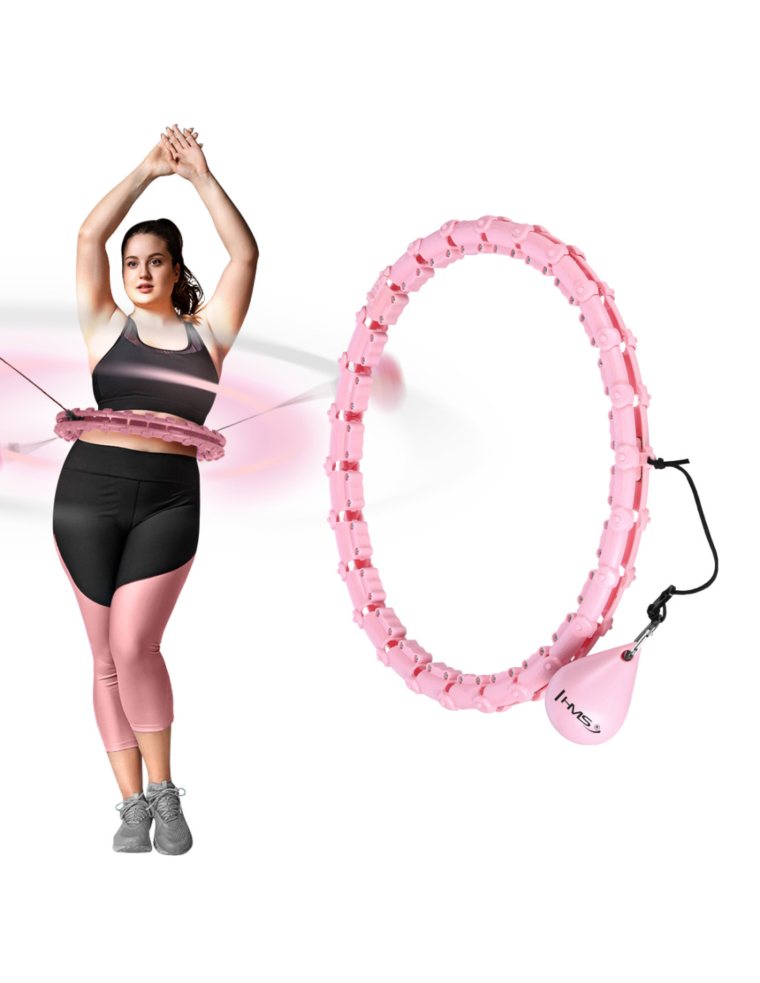 HULA HOOP HHW11 СВЕТЛО РОЗОВ С МАСАЖИРАЩИ ДЪРЖАВКИ И ГРАВИТАЦИОННА ТОПКА + BR163 ЧЕРЕН ПЛЮСЕН РАЗМЕР HMS