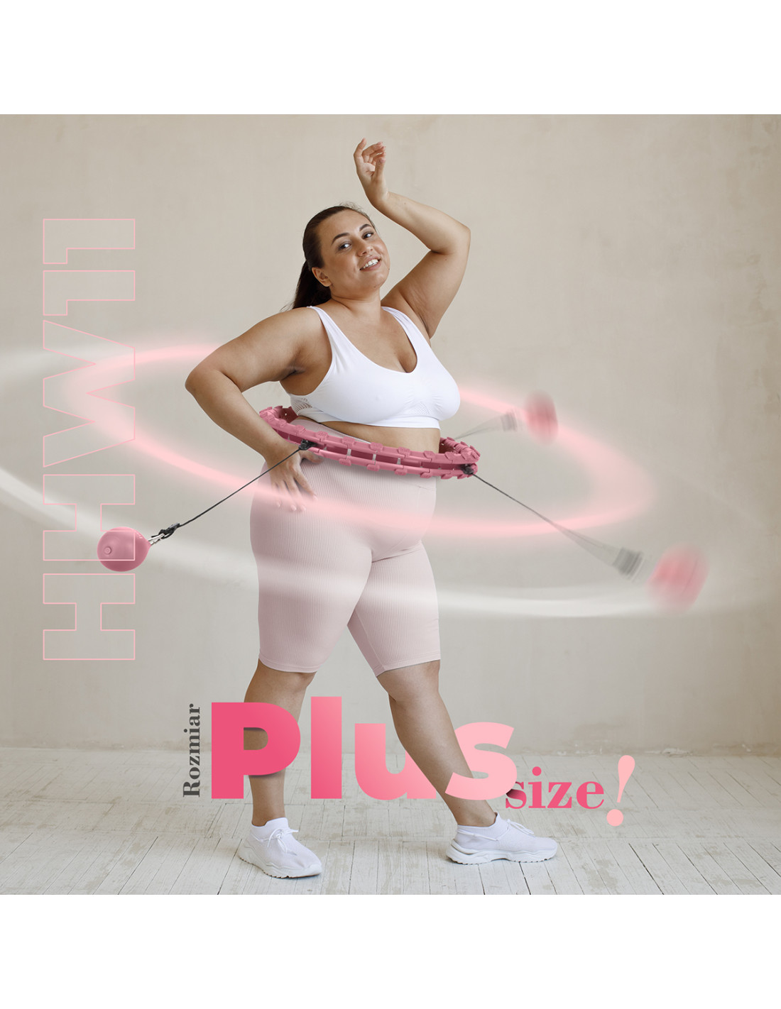 SET HULA-HOOP-REIFEN HHW11 LIGHT PINK MIT MASSAGENOPPEN UND SCHWERKRAFTBALL + BR163 BLACK PLUS SIZE HMS