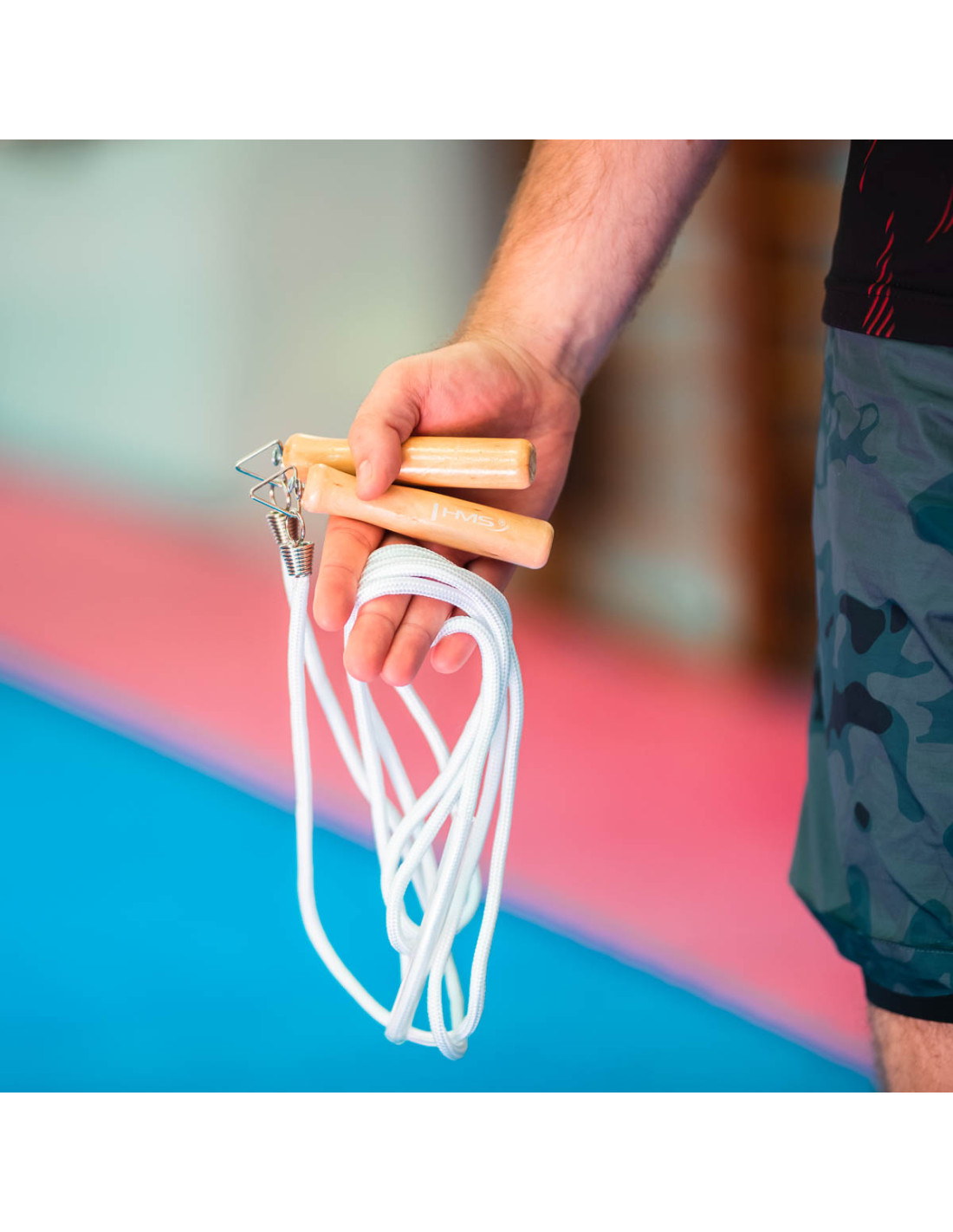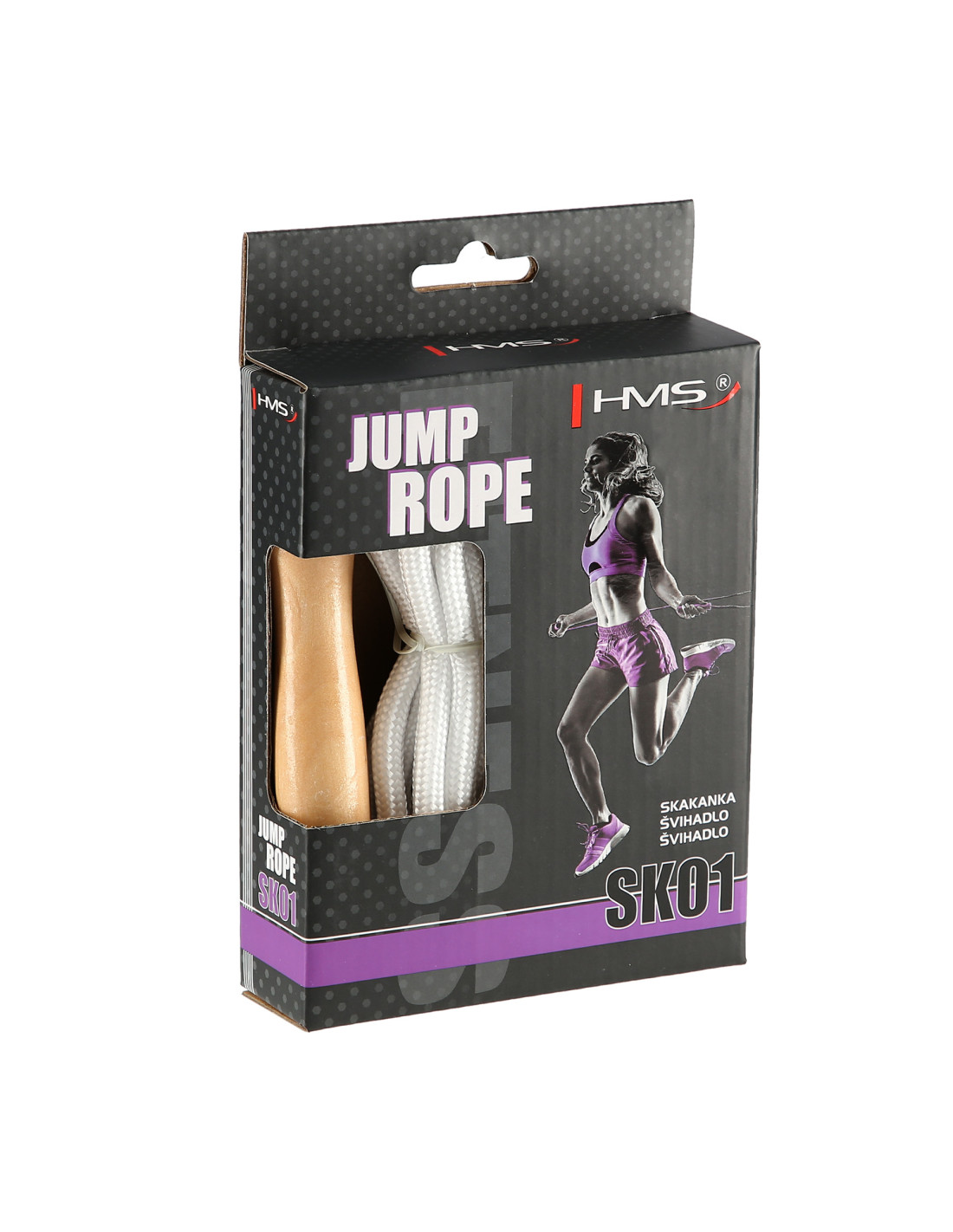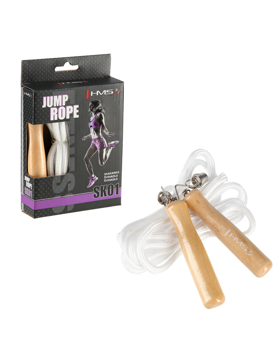 Въжето за скачане SK01 HMS е въже за скачане с две дървени дръжки и цветно памучно въже. Този продукт е класически артикул за фитнес.
