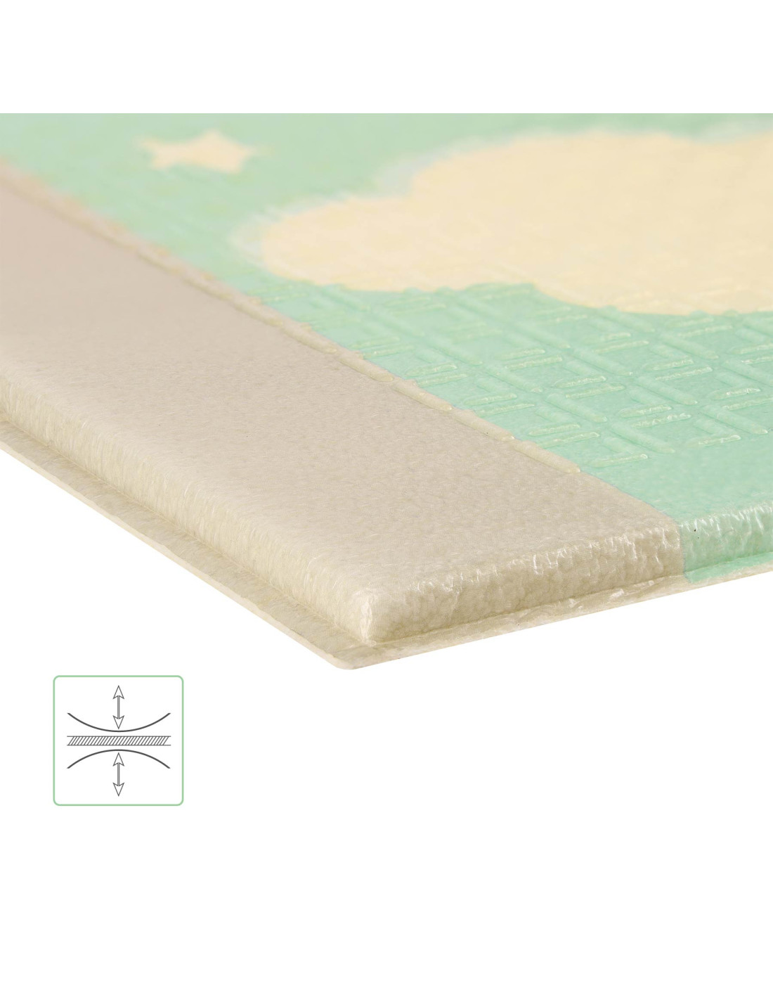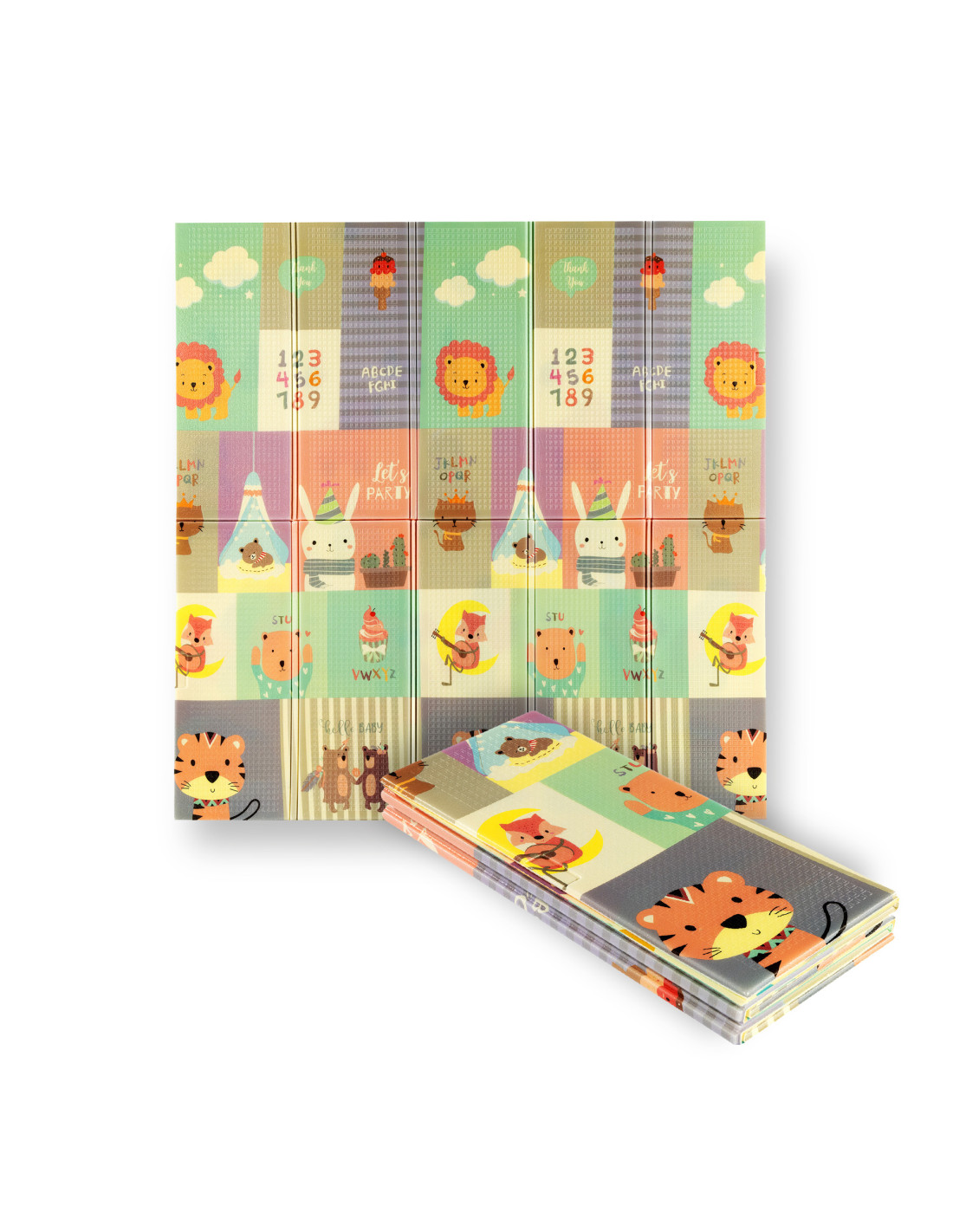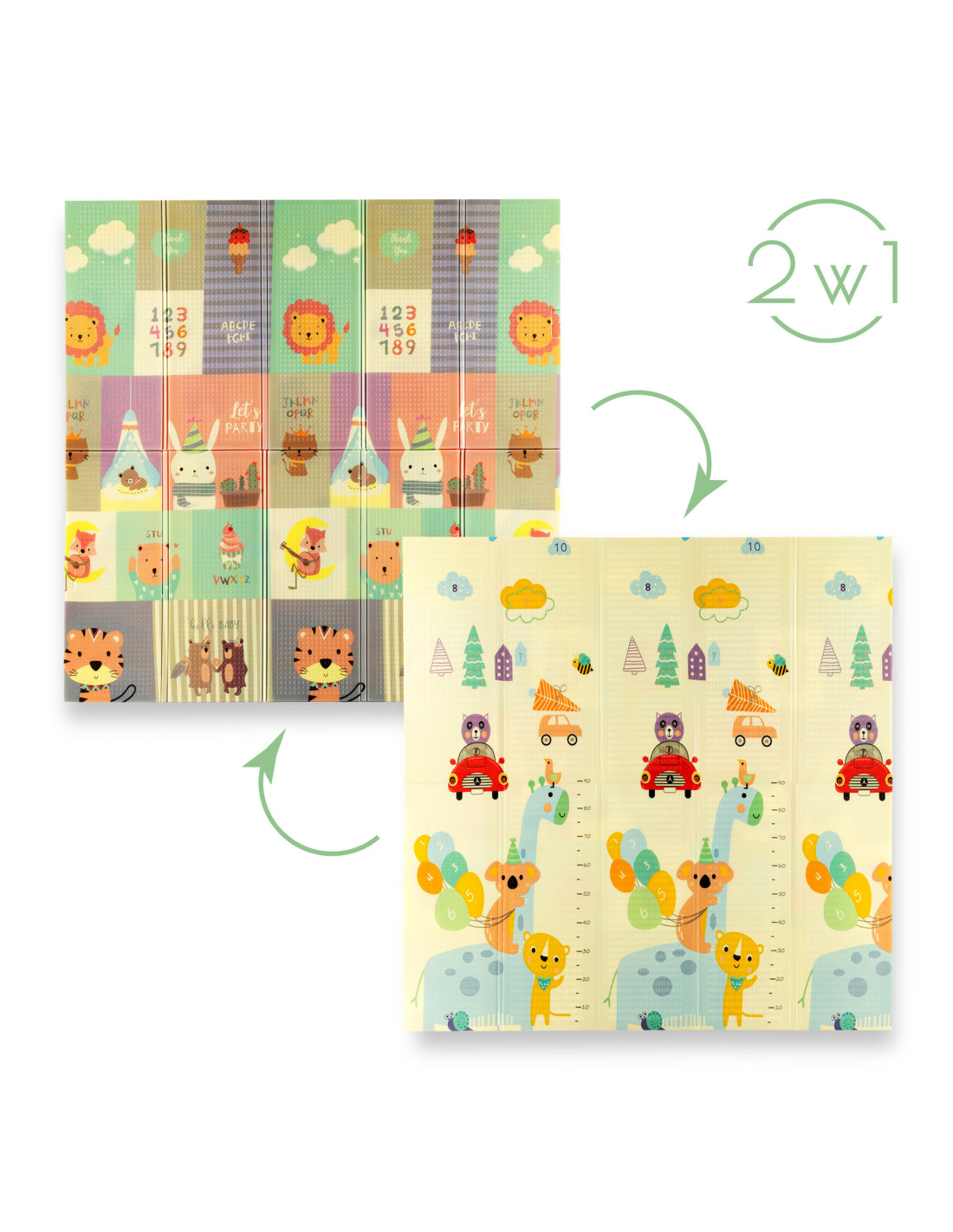 Постелката може да се използва не само за игра, но и като образователно средство. С релефни цифри и букви за подпомагане на четенето и илюстрации на плюшени мечета, тигри, коали и други животни, той подпомага сетивното и когнитивното развитие на вашето дете. Двустранният дизайн на постелката позволява смяна на обстановката, осигурявайки разнообразна стимулация и поддържайки интереса на бебето.