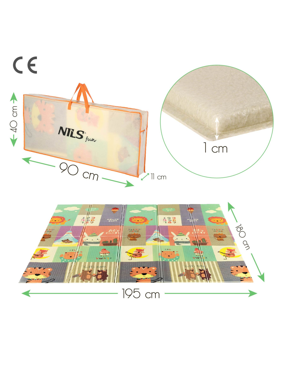 Открийте свят на забавление с нашата нова сгъваема детска постелка ZOO от NILS FUN! Тази уникално проектирана постелка с цветен мотив ZOO не само ще зарадва вашето дете, но и ще се превърне в любимата му площадка. С размери 195x180 см, той предлага идеалното пространство за развиване на двигателни и образователни умения.