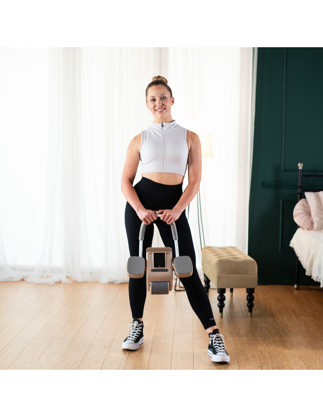 Das KA08 ist mehr als nur ein einfaches Trainingsrad. Auf dem digitalen Bildschirm des Geräts lassen sich Wiederholungen, Geschwindigkeit, Kalorienverbrauch und Trainingszeit ablesen, so dass Sie Ihre Fortschritte leicht überwachen und Trainingsziele festlegen können. Der Roller verfügt außerdem über eine praktische Handyhalterung, damit Sie während des Trainings Workout-Apps nutzen oder Ihre Lieblingsvideos ansehen können.