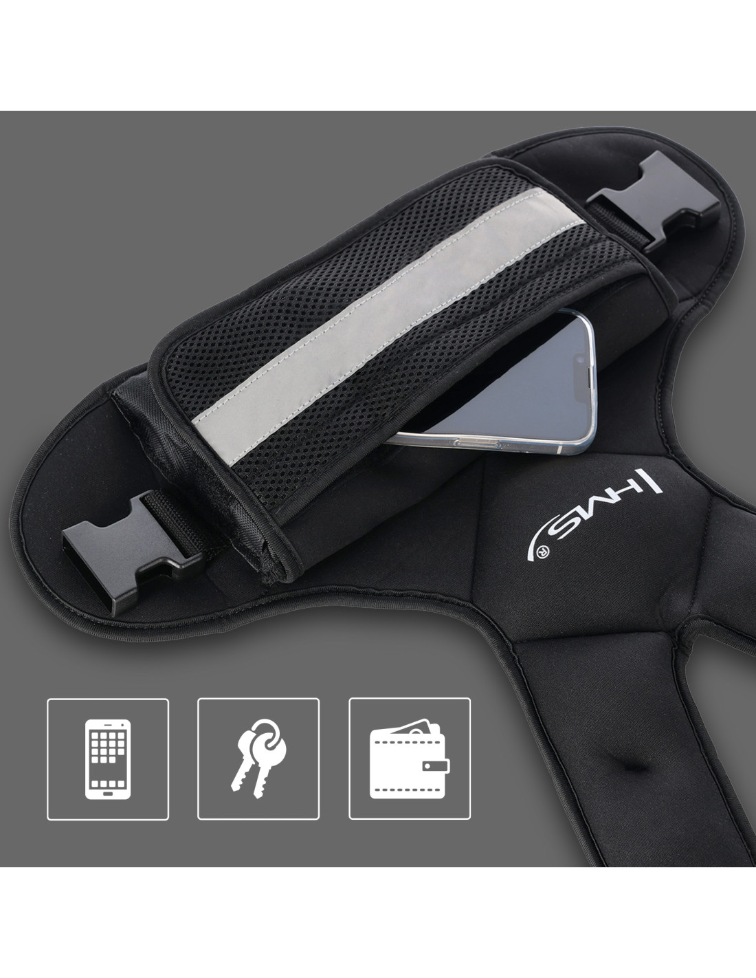 Комфортът беше основен приоритет при разработването на жилетката. Регулируемите презрамки позволяват перфектно прилягане за всеки тип фигура, а специалният неопренов материал е мек, устойчив на изпотяване и предпазва жилетката от изплъзване дори при интензивно натоварване. Еластичен мрежест джоб осигурява съхранение на вашия телефон, ключове или портфейл, което прави обучението още по-практично.