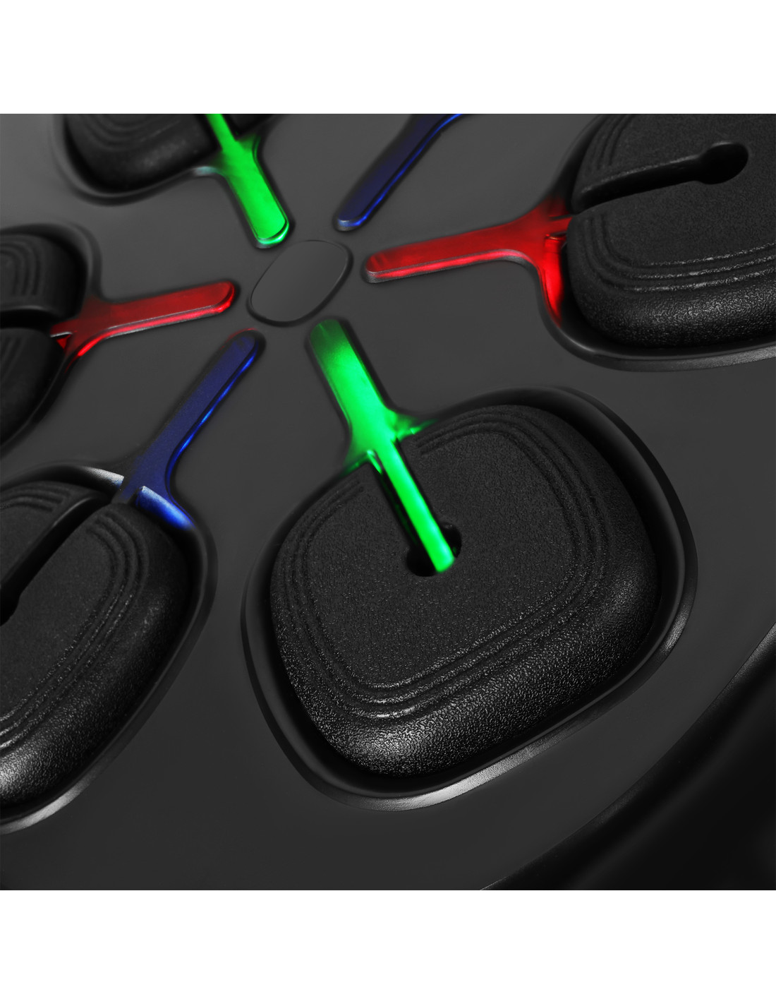 TB10 verwendet eine farbenfrohe, dynamische Hintergrundbeleuchtung, die Reaktionen, Reflexe und die Hand-Augen-Koordination noch effektiver stimuliert. Die Hintergrundbeleuchtung aktiviert eines von acht Feldern, die der Benutzer so schnell und präzise wie möglich treffen muss. Die variable Farbgebung verleiht dem Training eine neue Dimension – sie erhöht nicht nur die Attraktivität, sondern erleichtert auch die Unterscheidung aktiver Felder, insbesondere bei höheren Geschwindigkeiten.