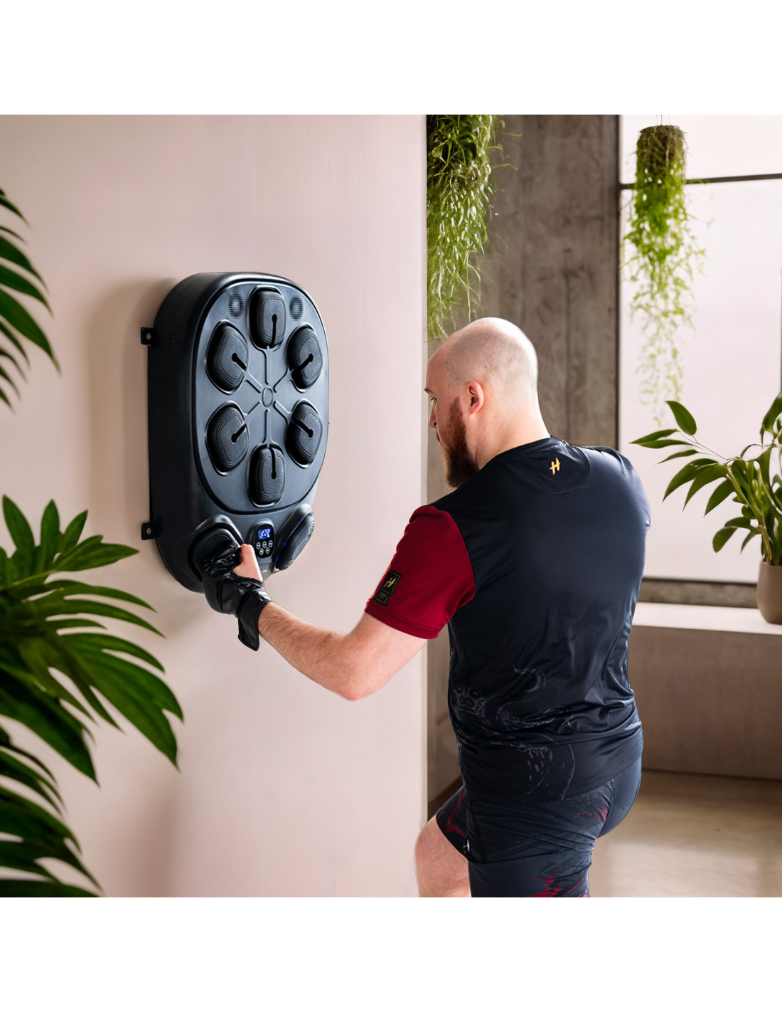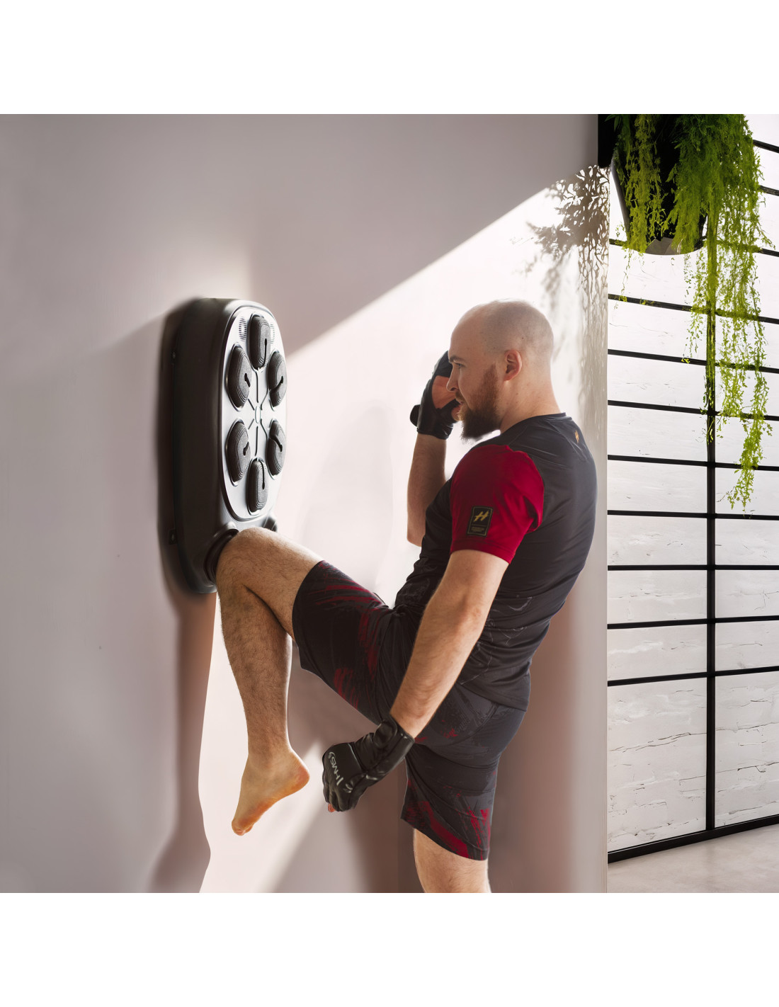 Die Zielscheibe des TB10 wurde vergrößert, sodass Sie mehr Platz zum Schlagen haben und natürlichere Bewegungen ausführen können. Im unteren Teil der Zielscheibe wurden zwei zusätzliche Trainingsbereiche hinzugefügt, die speziell für das Training von Knie- und Kinnschlägen konzipiert wurden. Dies ist eine echte Revolution im Heim-Boxtraining – jetzt können Sie die gesamte Bandbreite an Techniken üben, fast wie an einem Boxsack, aber in einer viel kompakteren und multimedialeren Form.