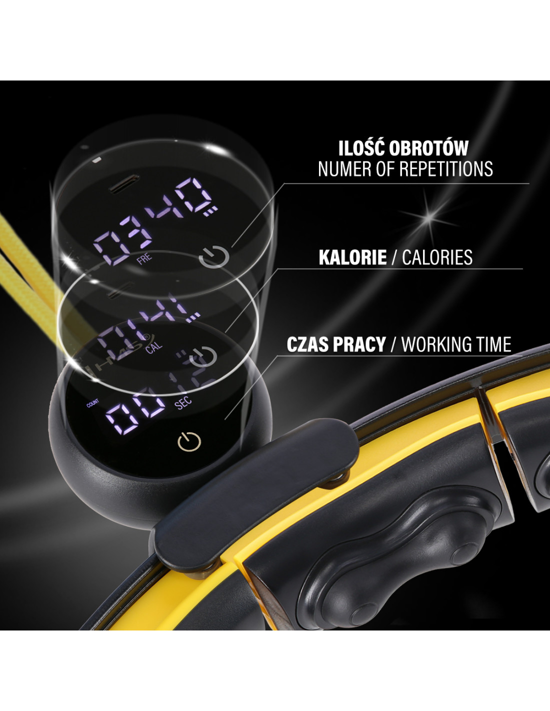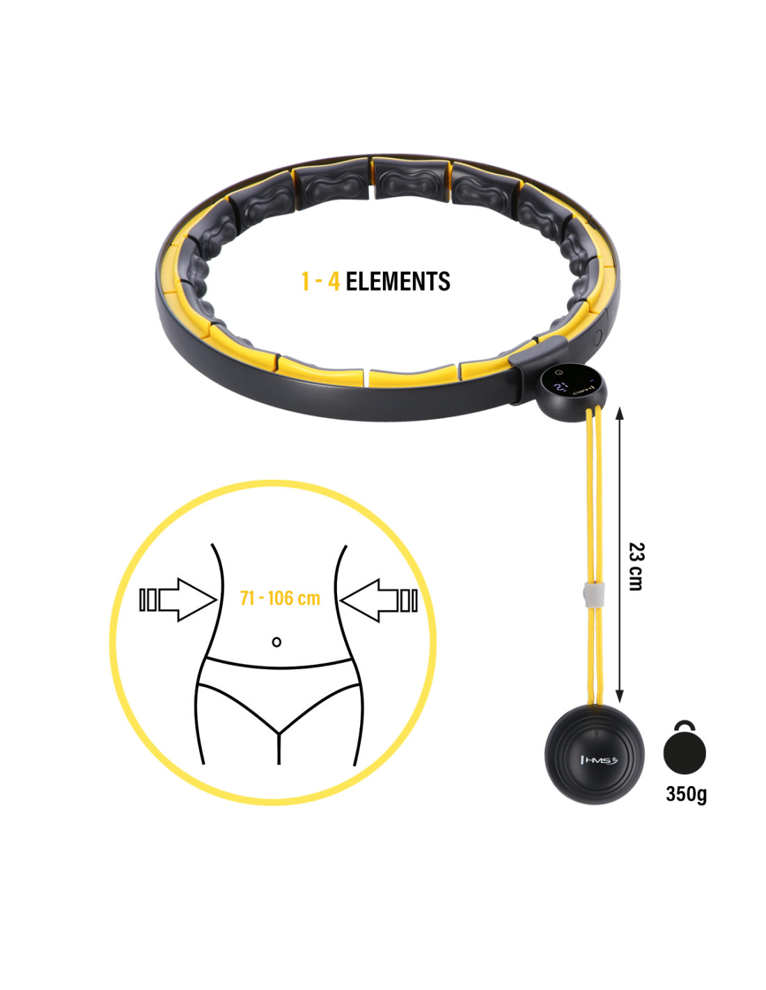 HHM21 HULA-HOOP-REIFEN TPE BLACK/YELLOW MIT MAGNETEN UND SCHWERKRAFTBALL + ZÄHLER HMS