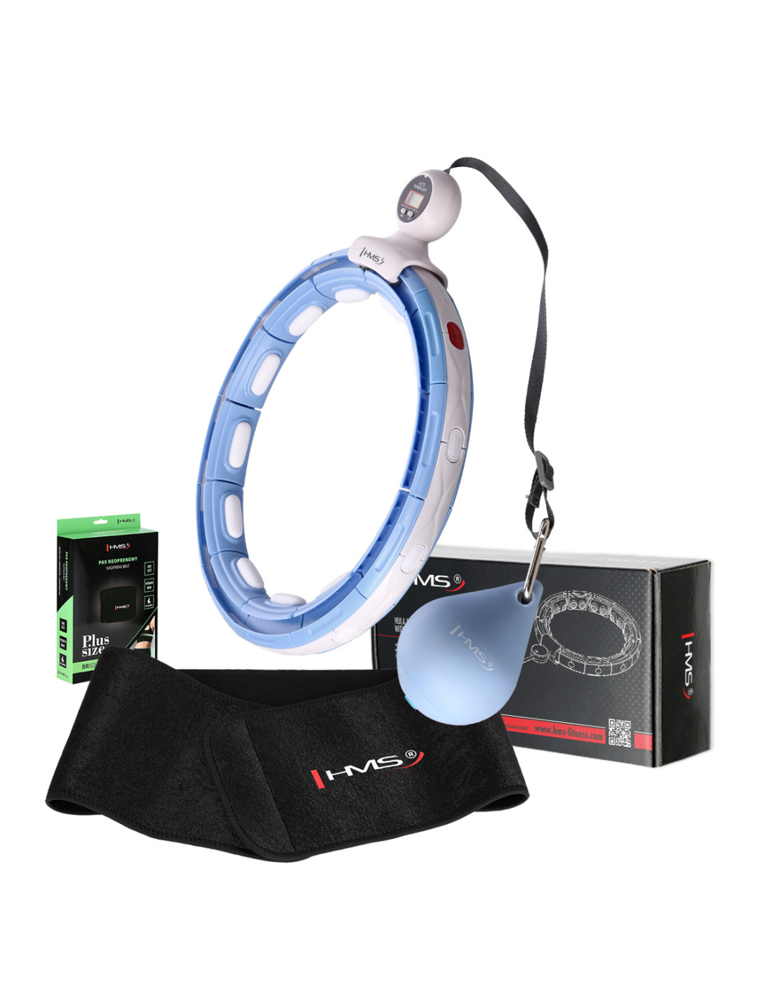 HULA HOOP MAGNETIC BLUE HHM15 С ТЕЖЕСТ + БРОЯЧ HMS + ОПОРА ЗА ТАЛИЯ BR163 ЧЕРЕН ПЛЮЗ РАЗМЕР