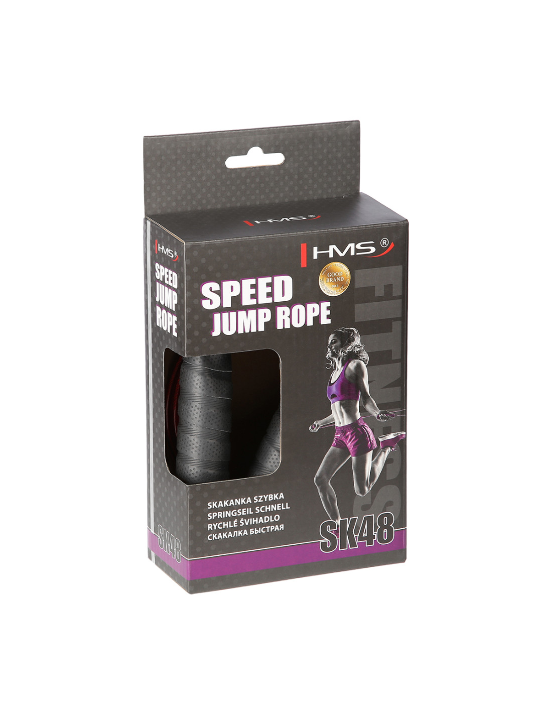 SK48 HMS, алуминиево въже за скачане, подходящо за тренировки на цялото тяло. Осигурява подобрена физическа производителност, изгаряне на мазнини и тонизиране на седалищните мускули, бедрата и мускулите на прасеца.