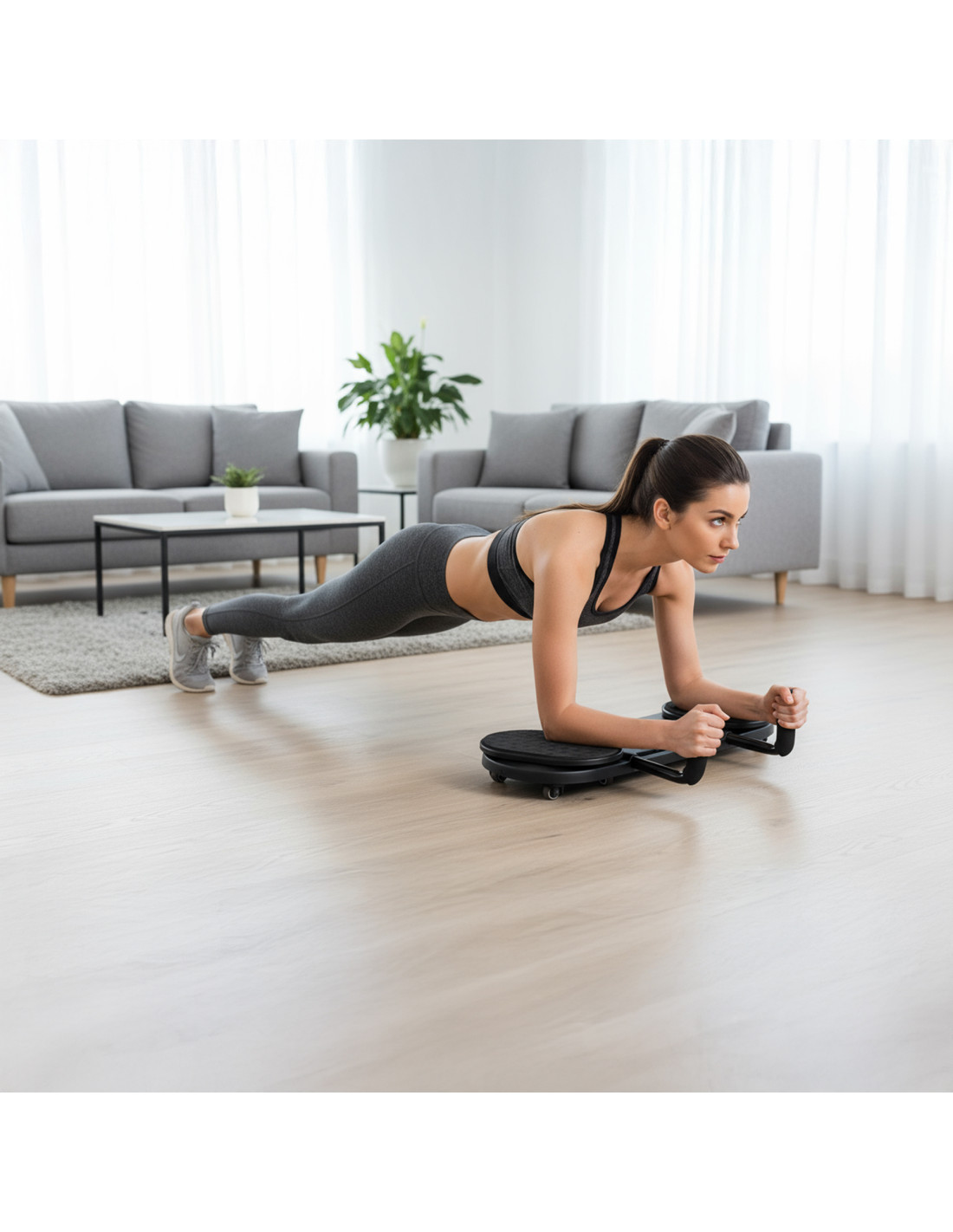Тренировка за цялото тяло у дома — с прецизен таймер (мин/сек), дръжки за лицеви опори/планк, ластици за съпротивление и опционални прикрепяеми ролки. HMS DBP02 съчетава стабилност на дъската, динамични лицеви опори и тренировка с ластици в един компактен, сгъваем комплект.