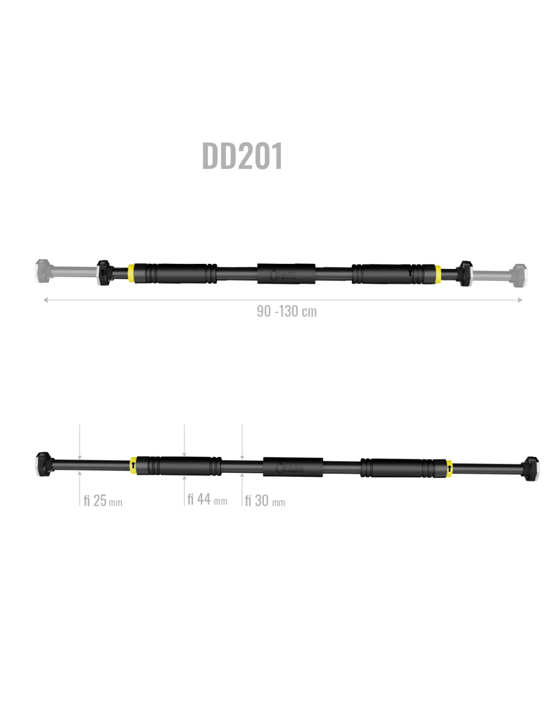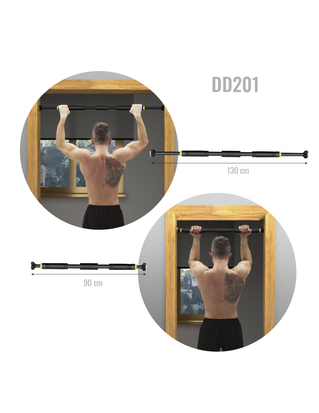 Лостът за набирания DD201 HMS PREMIUM е изработен от здрава стомана. Този продукт е идеален за тези, които нямат достатъчно място за голяма домашна фитнес зала. Широка гама от настройки на дължината, варираща от 90 до 130 см, улеснява намирането на правилното място за щангата за набирания.