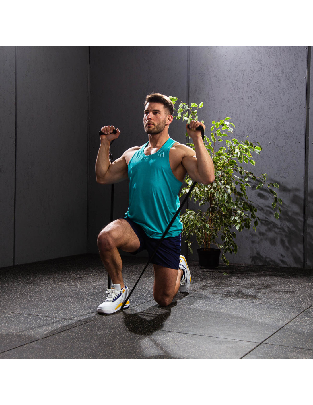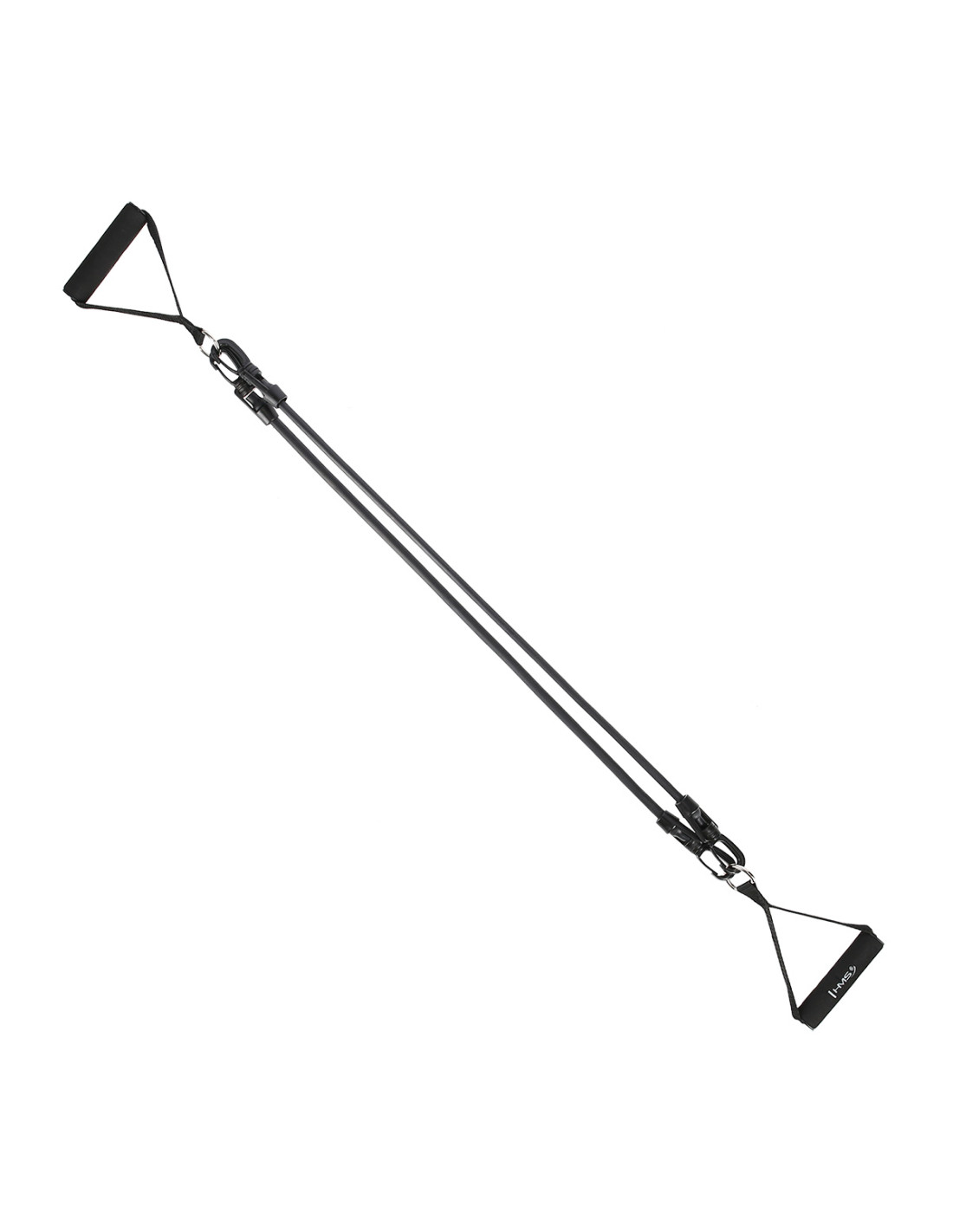 TX02 HMS е комплект за упражнения. Той използва телесното тегло на потребителя, за да подобри фитнеса и силата. Високо качество, изтънчен дизайн и издръжливост гарантират успешна тренировка при всякакви условия. Комплектът включва четири съпротивителни ленти, една гумена лента, една съпротивителна лента, две дунапренени дръжки, една дръжка за глезена, една дръжка за врата и въже за скачане. Този уред предлага модерен начин за изпълнение на упражнения за кръстосано обучение. Всяка двойка кабелни макари има различна твърдост, което ви позволява да променяте интензивността на вашата тренировка със съпротивление. Всеки кабелен макара разполага с дръжка, позволяваща цялостна силова тренировка на всички мускулни групи.