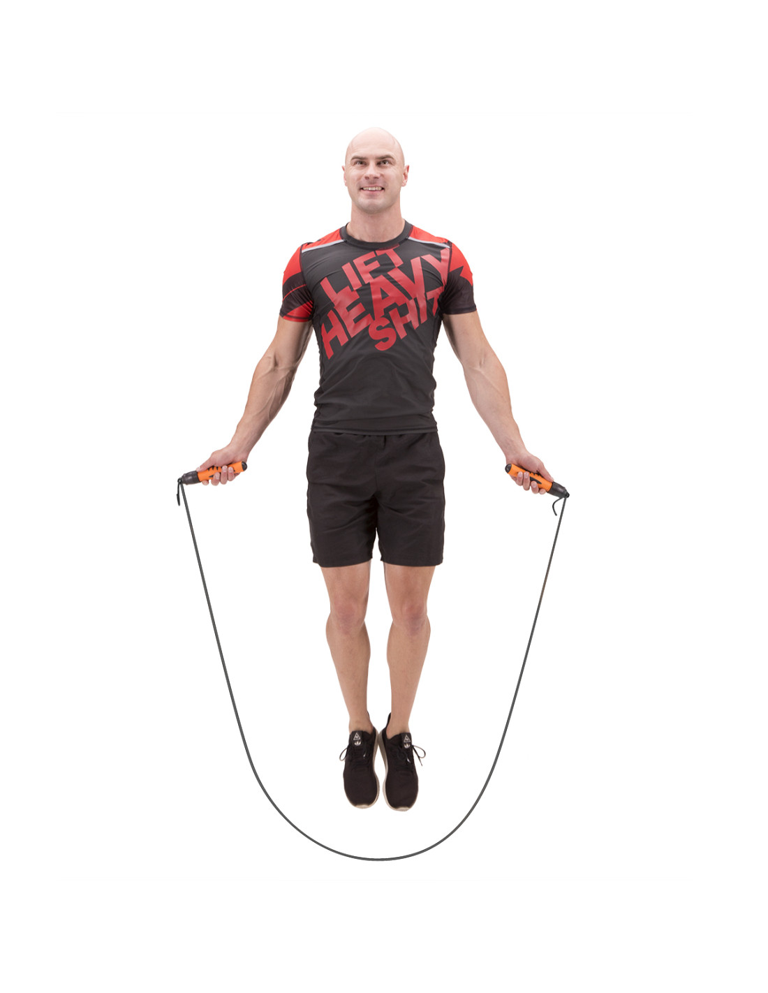 Въжето за скачане с дължина 2750 мм е изработено от висококачествена гума. Това позволява дълготрайна и безпроблемна употреба. Удобните и ергономични дръжки прилягат перфектно в ръцете ви и осигуряват сигурен захват по време на тренировката. Продуктът е оборудван и с електронен брояч.