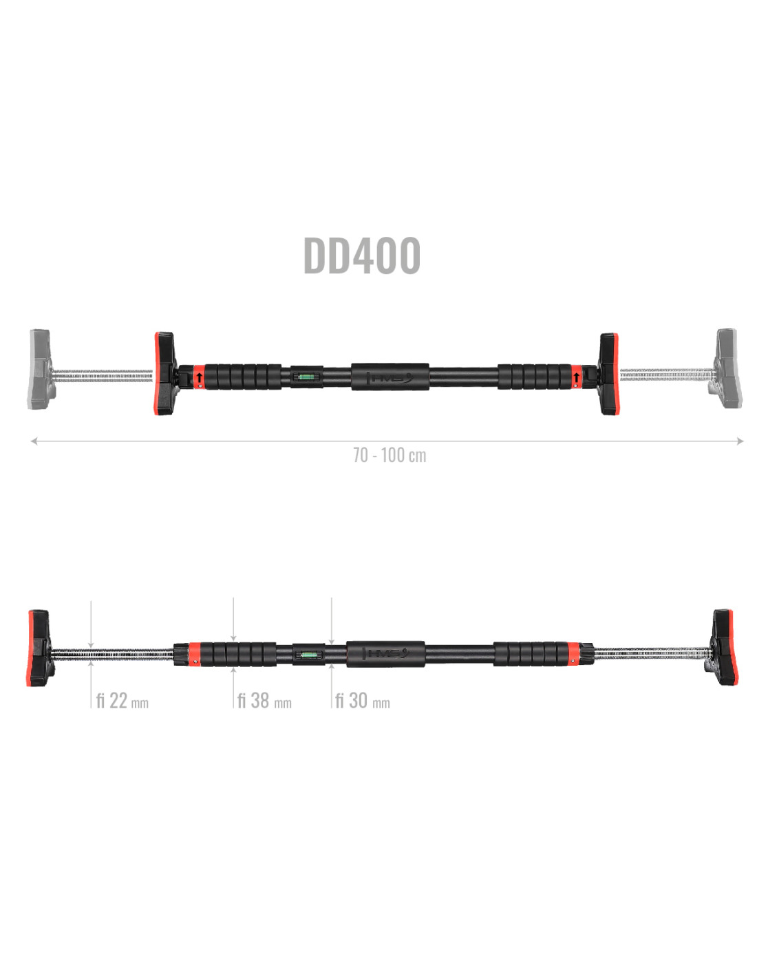 DD400 се регулира от 70-100 см, което му позволява да пасва на различни типове врати. Сглобяването е много просто и не изисква специални инструменти. Шината е с вграден гаечен ключ. Лентата също така е лесна за съхранение и транспортиране, което я прави идеален избор за тези, които искат да тренират у дома или в движение.
