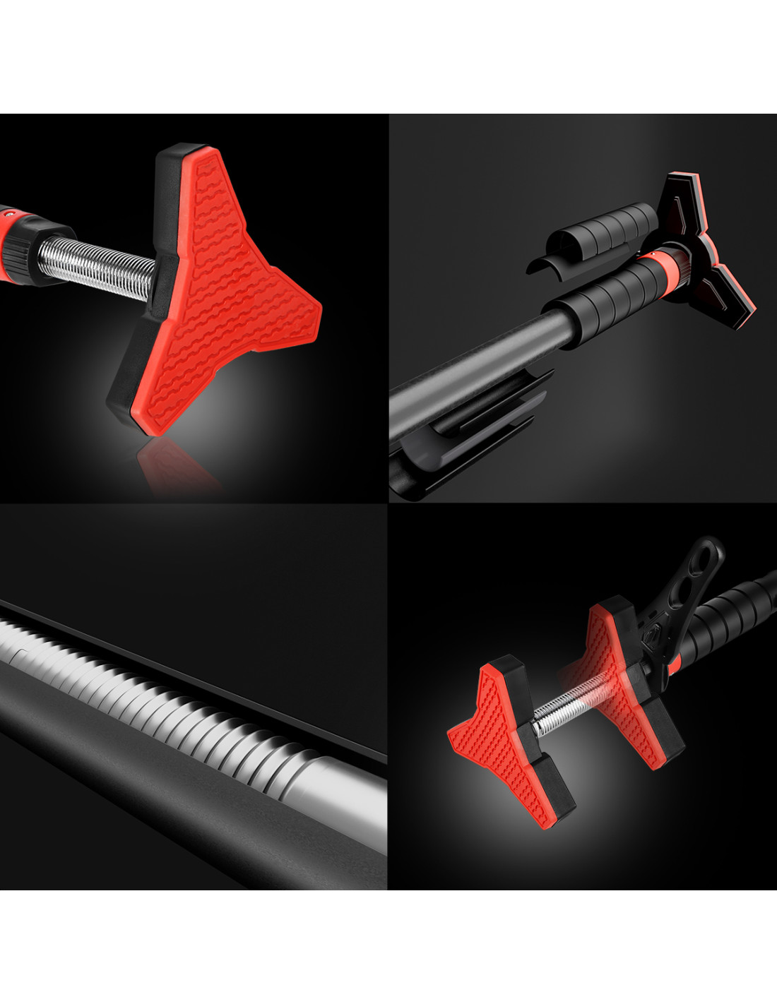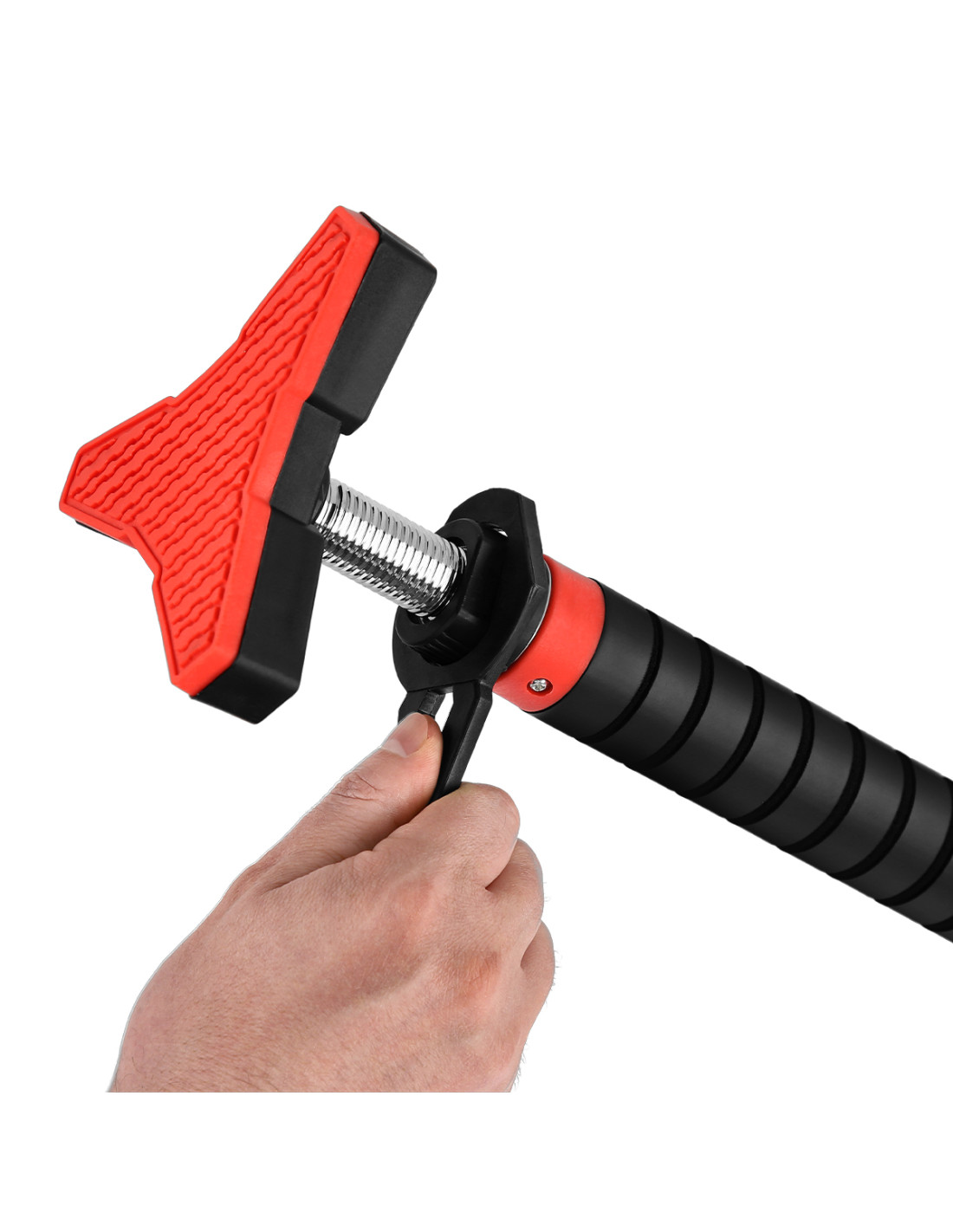 Благодарение на иновативното използване на триточковата скоба не са необходими винтове. Това решение не само предотвратява повреда на рамката на вратата, но също така позволява бързо регулиране на височината при монтиране на щангата.