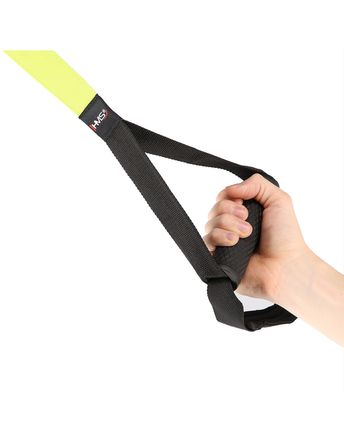 Тренировъчните ленти TX11 HMS ви позволяват да регулирате дължината им в зависимост от изпълняваното упражнение или физиката на потребителя. По време на този тип тренировка мускулите се активират чрез преодоляване на гравитацията и извършване на това, което е известно като тренировка със собствено тегло. Това ви позволява да развивате мускулите на тялото си равномерно, без да се притеснявате за натоварването на ставите и гръбначния стълб. Упражненията с TX11 развиват сила, баланс, гъвкавост на ставите и фитнес.