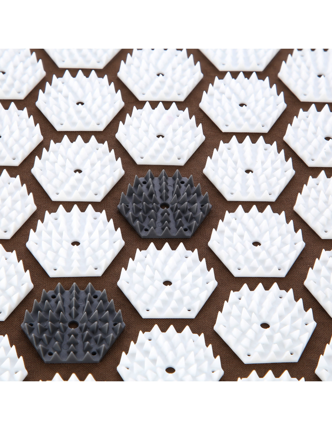 Постелката разполага дори с 8640 пластмасови акупресурни точки, съответстващи на същия брой точки на натиск. Акупресурните точки са разположени върху специално контурирани кръгове за нокти. Големият брой и подходящата плътност на тези точки ви помагат да постигнете оптимално налягане.