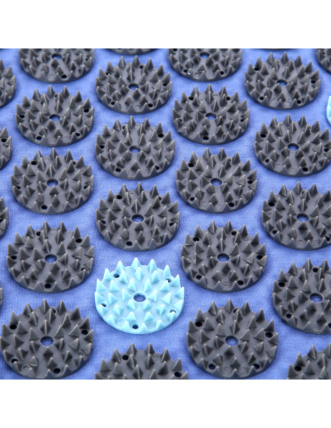 Постелката разполага дори с 6930 пластмасови акупресурни точки, съответстващи на същия брой точки на натиск. Акупресурните точки са разположени върху специално контурирани кръгове за нокти. Големият брой и подходящата плътност на тези точки ви помагат да постигнете оптимално налягане.