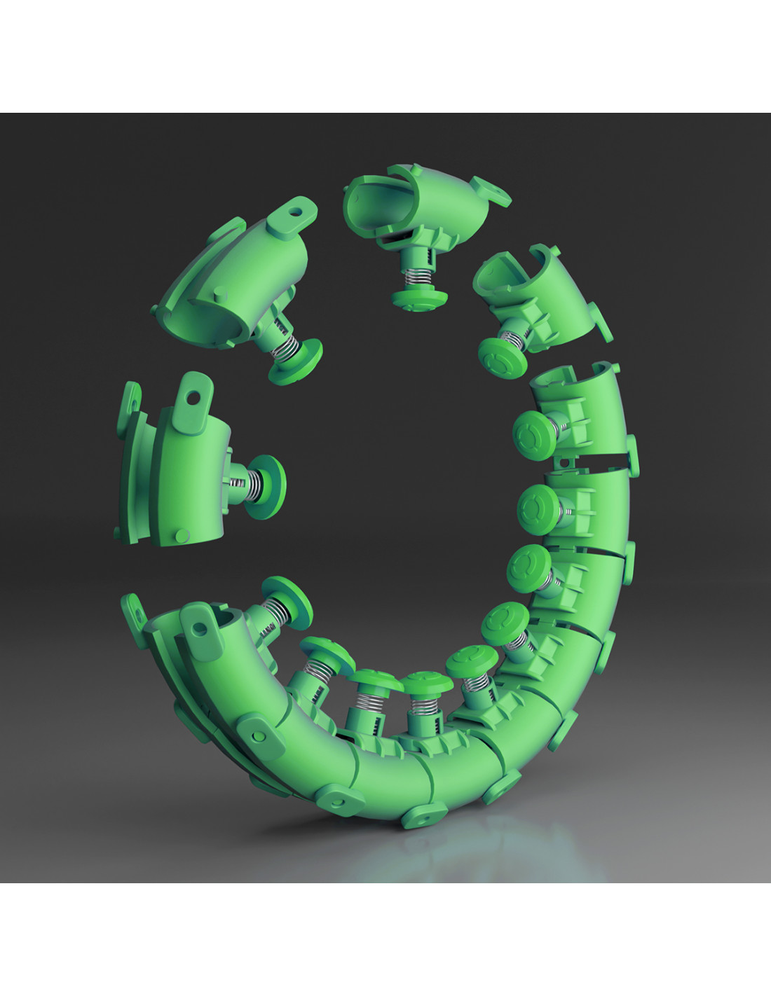 Der Reifen kann man durch Clips mit Magneten öffnen. Um weitere Elemente zu verbinden, braucht man ein Element in ein anderes Element einstecken. Die Massagenoppen müssen in die Löcher richtig eingeführt werden. Beim Entfernen der Elemente braucht man nur ein ausgewähltes Element zu greifen und es zu drücken. Man kann dann die Massagenoppen aus den Löchern herausnehmen. Man schiebt danach die Schiene mit dem Schwerkraftball, schließt die Clip-Verschlüsse und passt die Seillänge an.