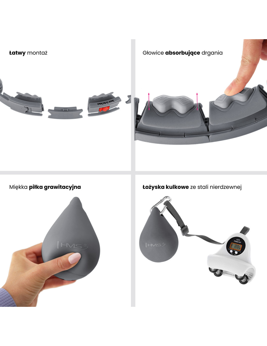 HHW06 HMS ist ein verstellbarer Hula-Hoop-Reifen mit stoßdämpfenden Massagepunkten und einem Schwerkraftball. Er ermöglicht es, gleichzeitig Training und 360-Grad-Massage der Taille zu machen. Er ist perfekt u.a. für Stärkung und Kräftigung der Muskeln. Dank der Anpassung an die Taillenweite fällt HHW06 nie während der Trainings herunter. Ein Heim-Cardio-Training kann lang und angenehm sein, was zu schnelleren und besseren Trainingseffekten beiträgt! Dieses Produkt ist sowohl für Kinder als auch für Erwachsene bestimmt.