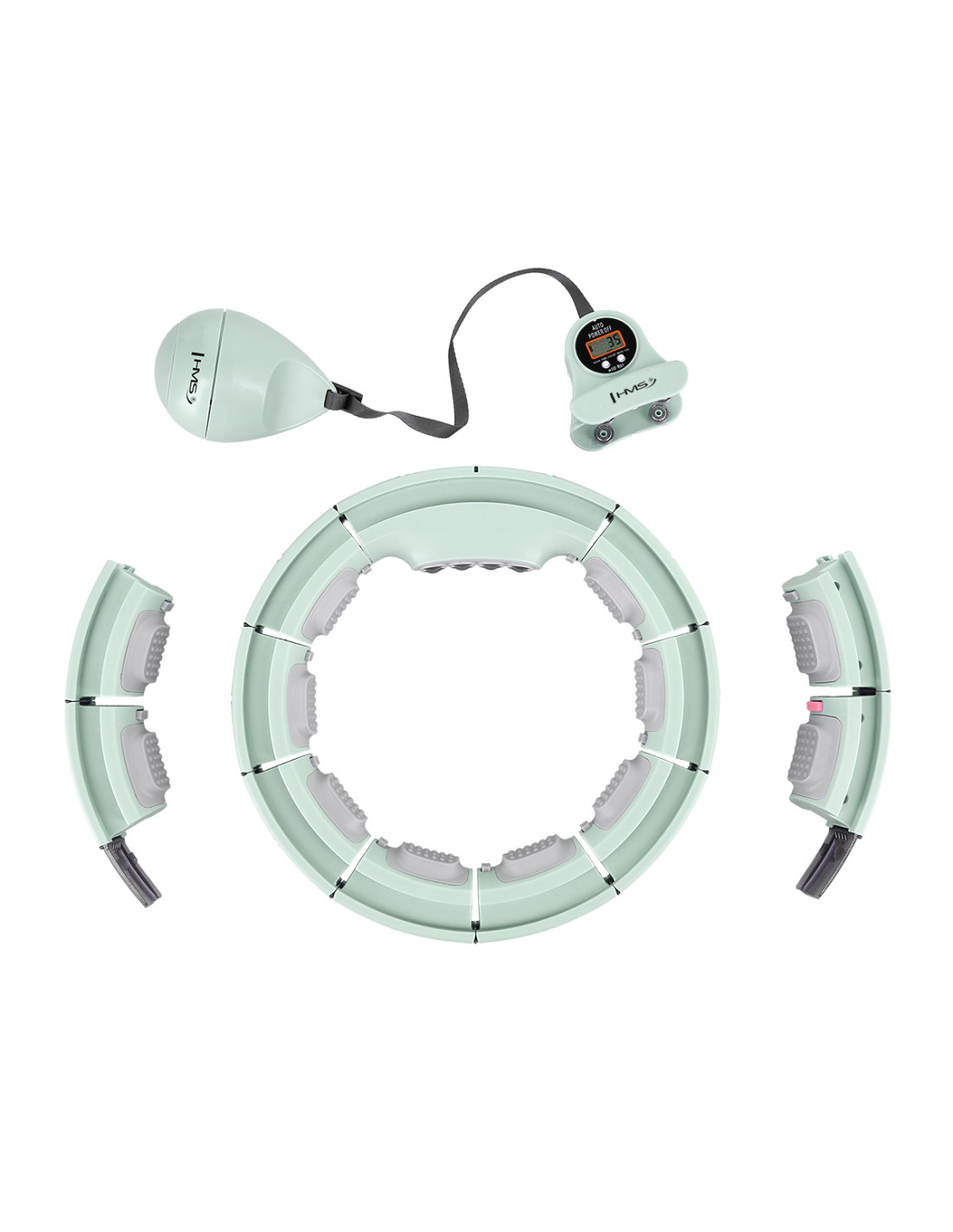 Die Konstruktion des Hula-Hoop-Reifens von HMS ist aus hochwertigen Materialien gefertigt. Die richtige Auswahl der besten Komponenten wird Ihnen volle Zufriedenheit garantieren und der eingebaute Zähler ermöglicht es Ihnen, die verbrannten Kalorien, die Anzahl der Umdrehungen und die Trainingsdauer zu überprüfen. Die Bewegung ist flexibel und angenehm für den Körper. Der mit Sand gefüllte Schwerkraftball garantiert die Sicherheit sowohl für den Benutzer als auch für den Ort, an dem Sie trainieren.