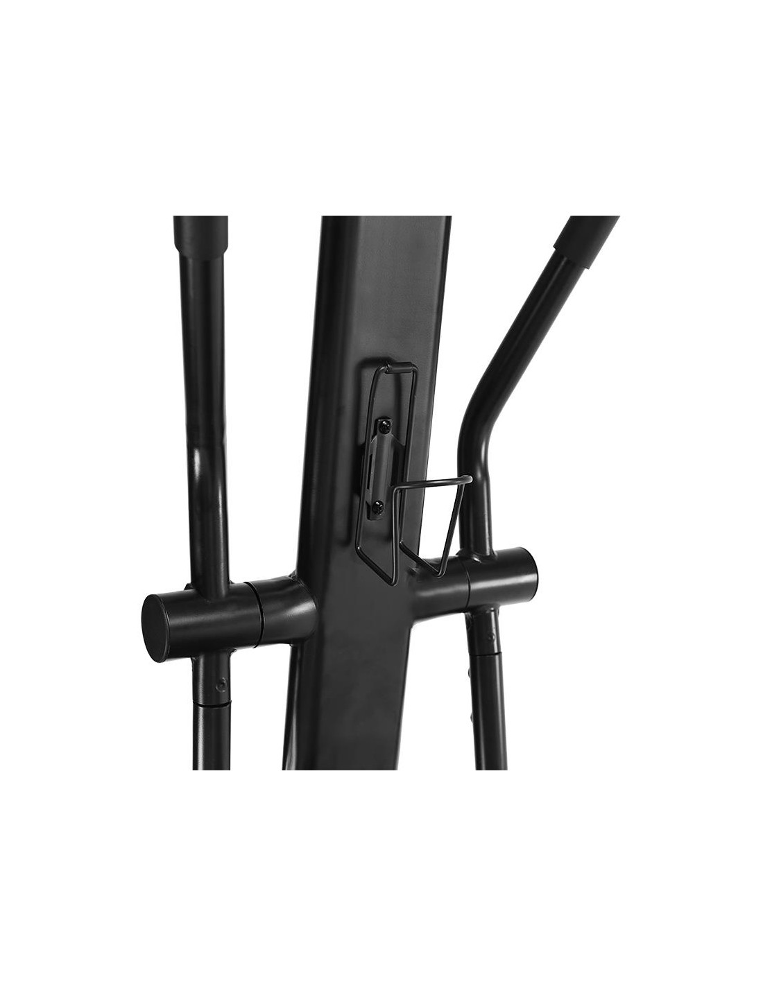 Der Crosstrainer ist auch mit Handpuls-Sensoren, einem Mini-Jack sowie Halterung für eine Trinkflasche ausgestattet.