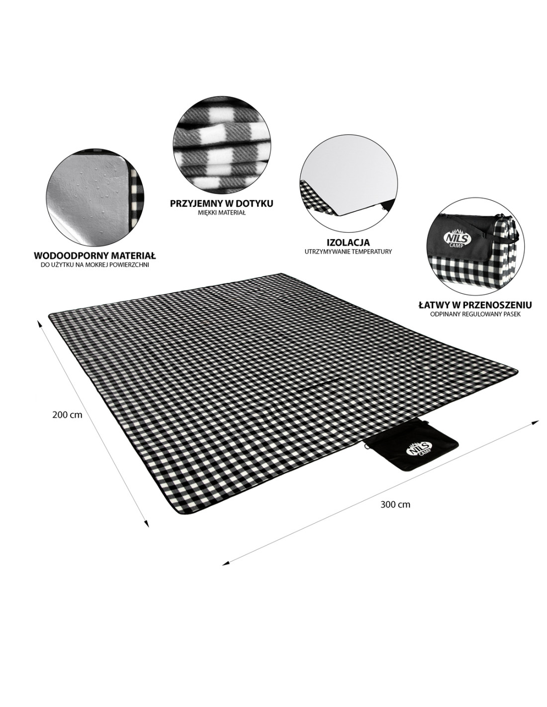ОДЕЯЛО ЗА ПИКНИК БЯЛО-ЧЕРНО 300x200 СМ PE + ALU NILS CAMP