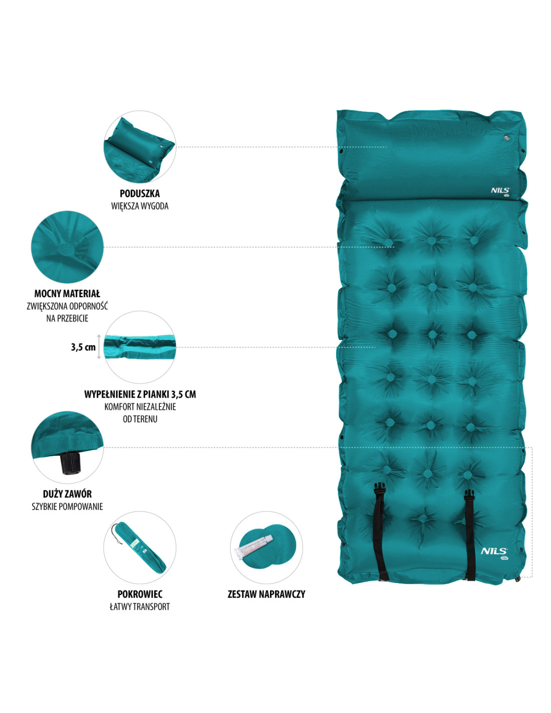 Самонадуваемата постелка с възглавница NC4018 е отлично решение за тези, които обичат да прекарват времето си на къмпинг, палатка или на плажа!