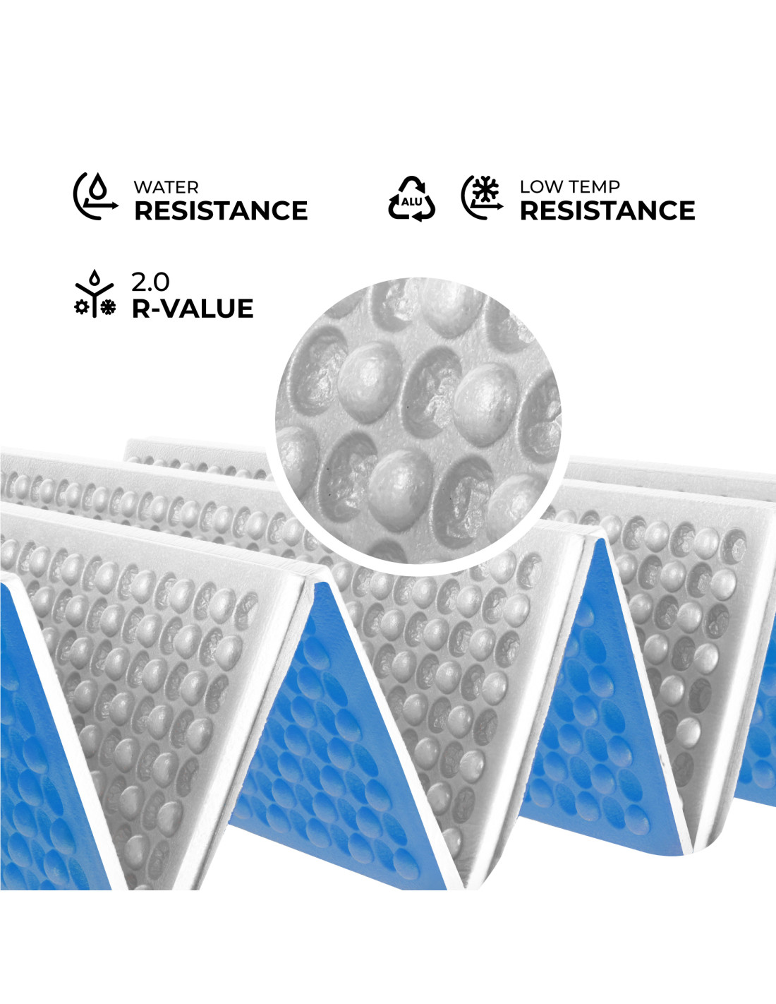 Благодарение на водоустойчивите свойства на XPE и алуминиеви слоеве, постелката не абсорбира влага или мръсотия, което я прави лесна за поддържане чиста. Дори след интензивна употреба е достатъчно просто да избършете повърхността с влажна кърпа.