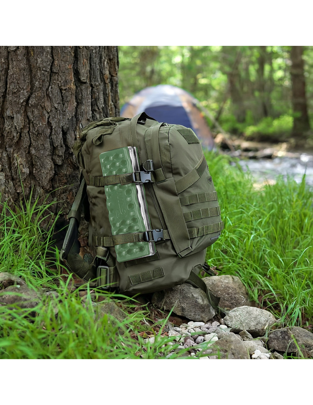 Долната страна на постелката е покрита с алуминиево фолио, което ефективно отразява топлината на тялото и предпазва от студ и влага. Това ви позволява да седите удобно на камъни, влажна трева или хладна земя, без да се притеснявате от дискомфорт.