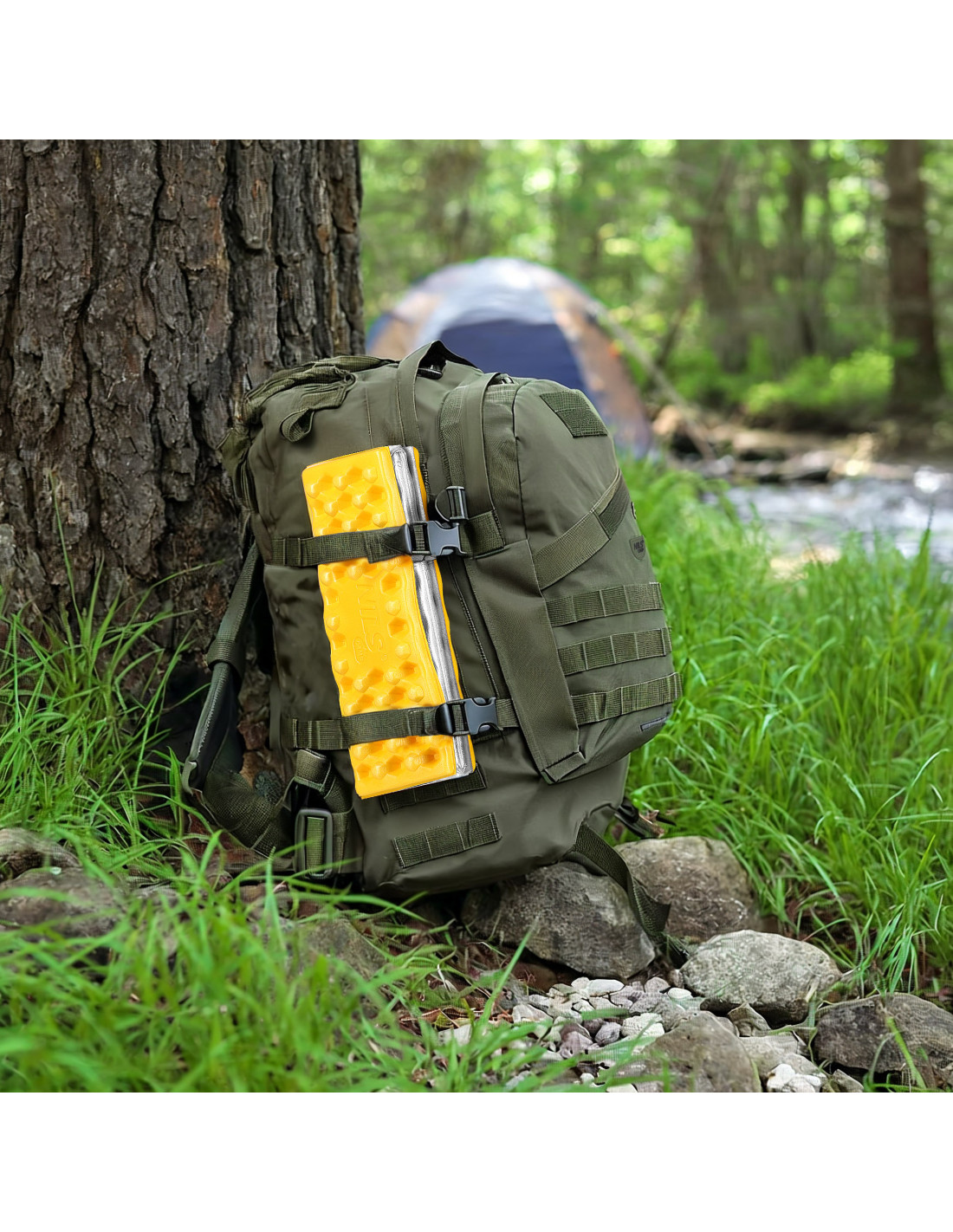 Долната страна на постелката е покрита с алуминиево фолио, което ефективно отразява топлината на тялото и предпазва от студ и влага. Това ви позволява да седите удобно на камъни, влажна трева или хладна земя, без да се притеснявате от дискомфорт.