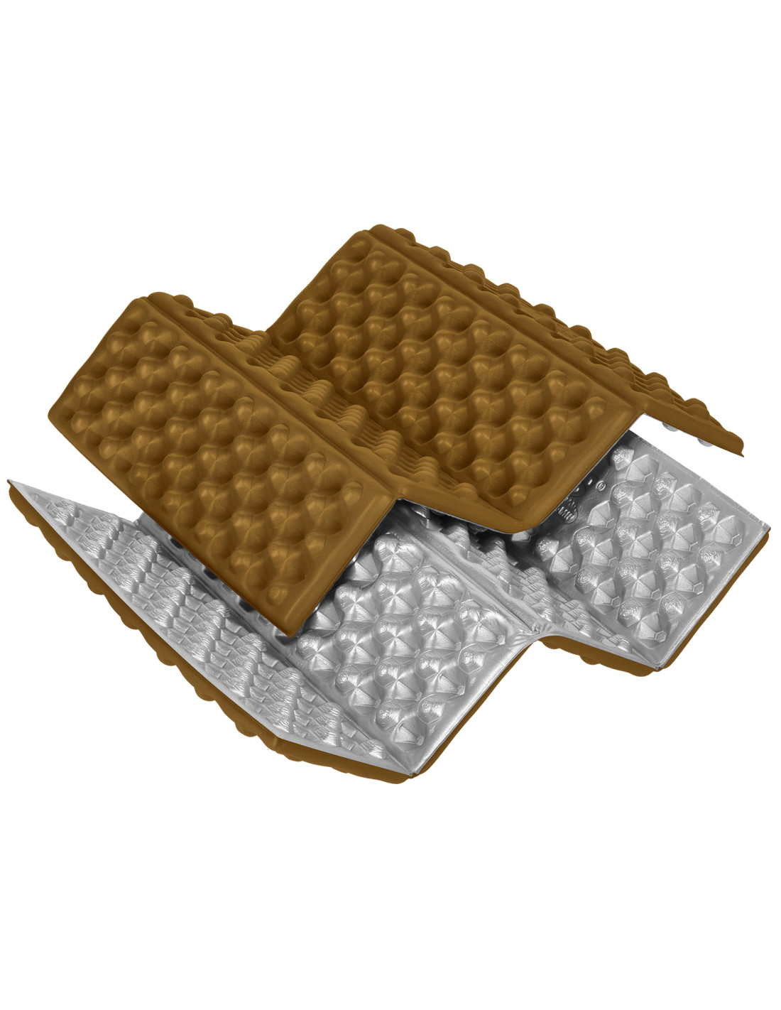 Долната страна на постелката е покрита с алуминиево фолио, което ефективно отразява топлината на тялото и предпазва от студ и влага. Това ви позволява да седите удобно на камъни, влажна трева или хладна земя, без да се притеснявате от дискомфорт.