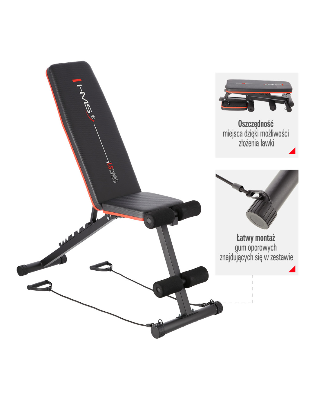 LS1203 HMS е свободностояща многофункционална тренировъчна пейка, идеална за домашни тренировки. 8-степенната регулируема облегалка, дунапренените ролки и допълнителните експандери позволяват на потребителите да изпълняват много нови и по-предизвикателни упражнения. Това пряко влияе върху ефективността на тренировката. Също така си струва да се отбележи, че тази тренировъчна пейка е много лесна за сглобяване, което ви позволява лесно да я сгънете след тренировка.