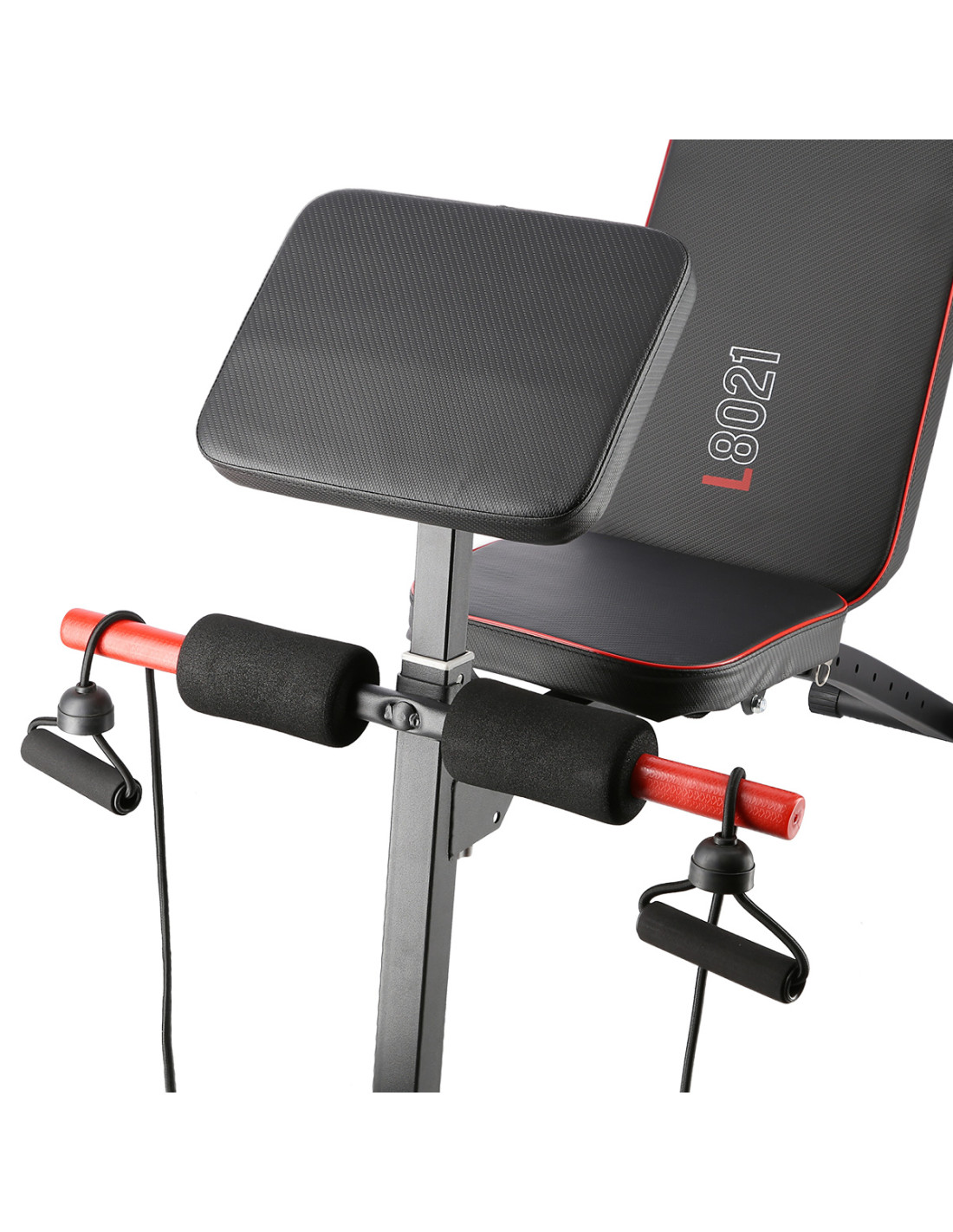 Die Multi-Trainingsbank L8021 ist ideal für jedes Heim-Fitnessstudio. L8021 ist mit einem verstellbaren Curlpult ausgestattet als auch mit Expandern, die im vorderen Teil befestigt sind. Die durchdachte Konstruktion der Trainingsbank L8021 ermöglicht es, unterschiedliche Übungen zu machen. Dank dem 7-stufigen Neigungssystem der Lehne kann man ein Training im Winkel von -20 o bis 90 o durchführen. Die Trainingsbank ist nicht nur vielseitig einsetzbar, aber auch platzsparend, daher gehört sie zur Hauptausrüstung jedes Heim-Fitnessstudios.