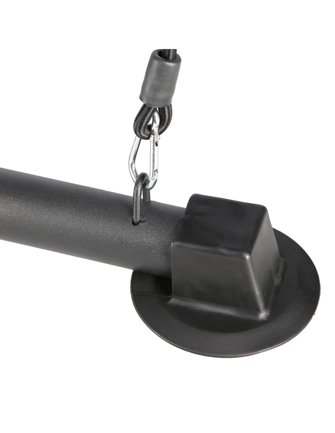 Die Trainingsbank steht oft auf Fußbodenpaneele oder anderen rutschigen Oberflächen zu Hause. Aus diesem Grund ist das Modell L8021 mit zwei großen Gummi-Endkappen auf der Vorderseite des Ständers ausgestattet, die Rückseite wird durch Gummi-Endkappe geschützt, die ebenfalls gerillt sind, um mehr Reibung zu bieten. Alle überstehenden Schrauben sind mit speziellen Endkappen versehen.