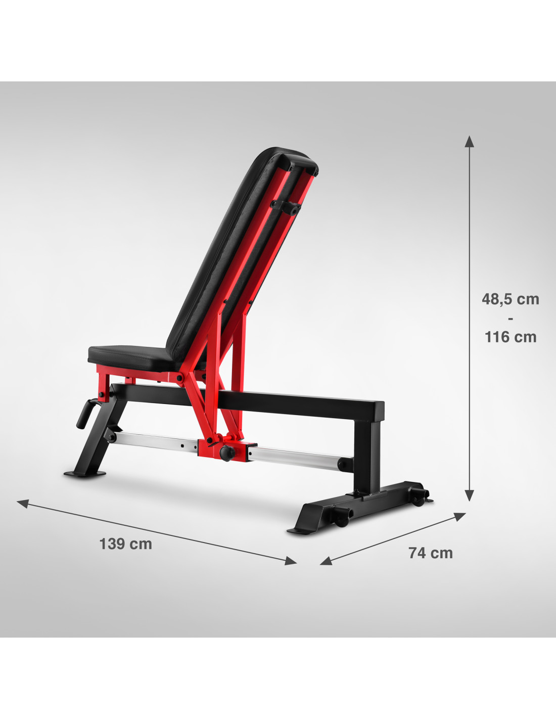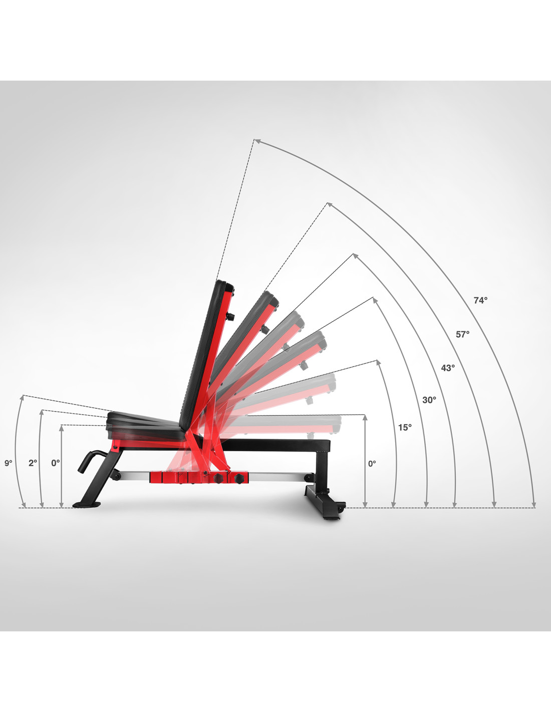 Лежанката за тежести HMS L5166 е с регулируема облегалка в 6 позиции , което ви позволява бързо да адаптирате ъгъла на наклона към конкретното упражнение. Тренировките в плоско, наклонено или почти вертикално положение ефективно активират различни мускулни групи – от гърдите и раменете до ръцете.