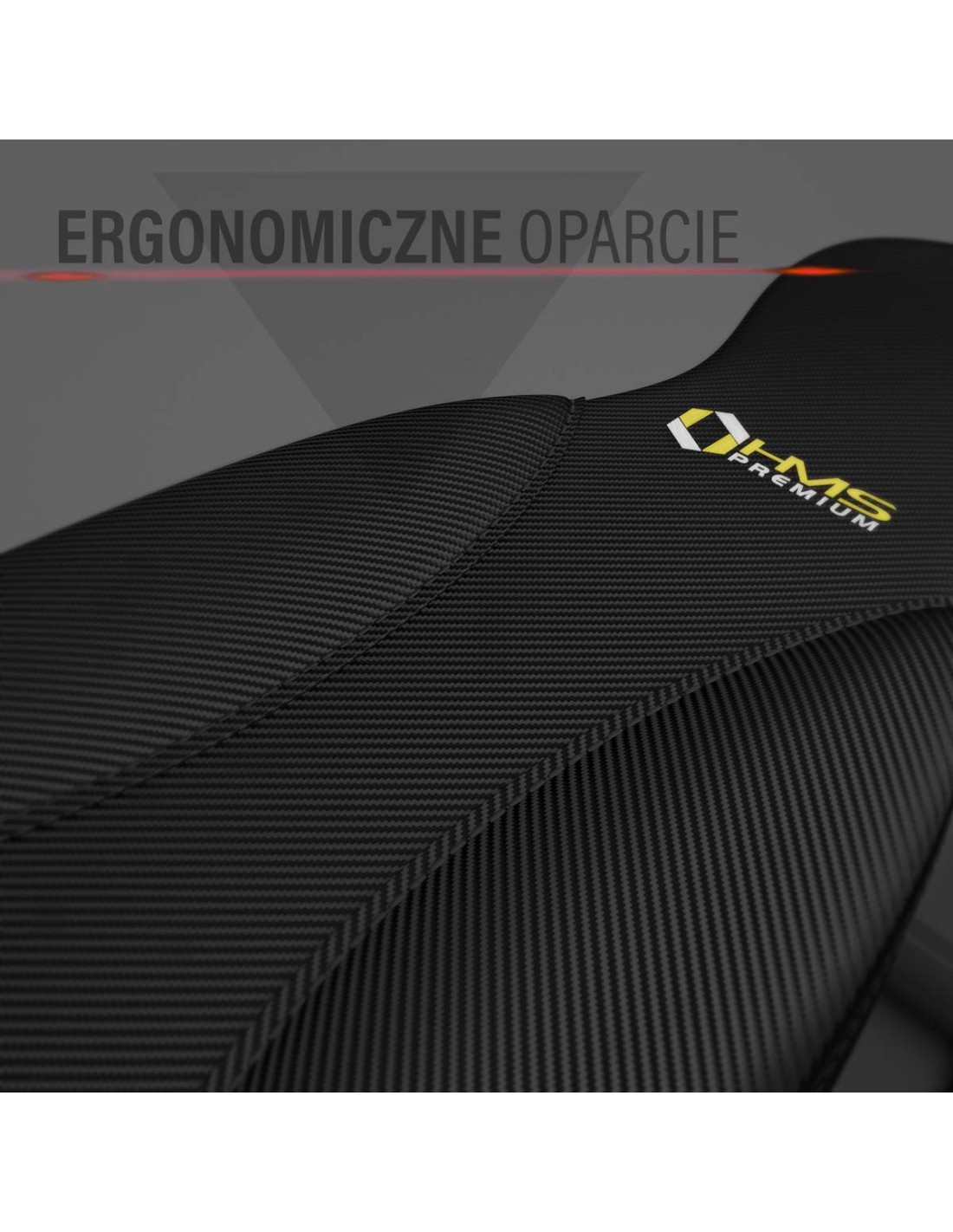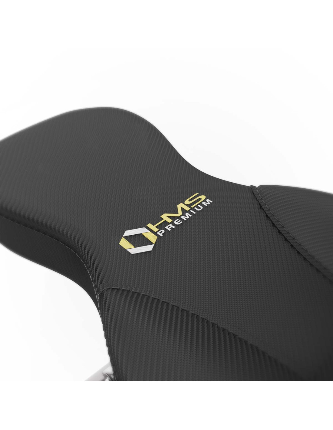 Тренировъчната лежанка е не само удобна и функционална, но и стилна. Комбинацията от черен карбонов материал и жълти бродирани елементи създава отличния визуален ефект, който е характерен за марката HMS PREMIUM.