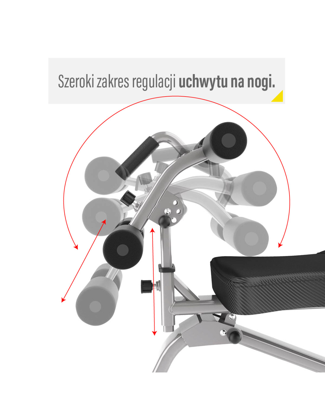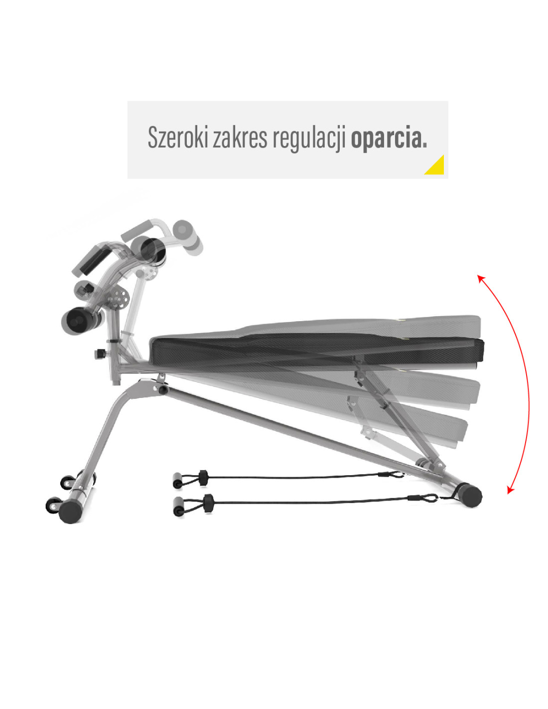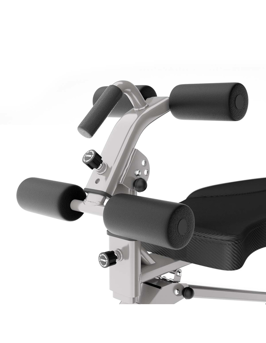 Тренировъчната пейка разполага с регулируеми ъгли на облегалката, опори за крака и регулиране на височината. Тези обширни опции за регулиране осигуряват лесно адаптиране към височината на потребителя и специфичната тренировка.
