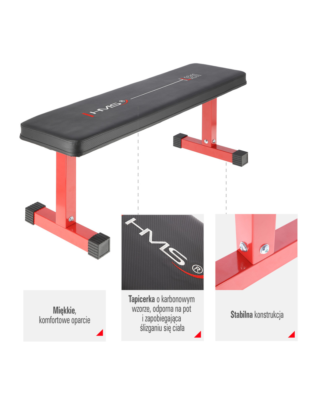 Пейката за тежести L1211 HMS се отличава преди всичко със своята здравина, която е резултат от висококачествените материали, използвани в нейната здрава конструкция. Той е здрав, но лек, което го прави лесен за съхранение. Неплъзгащите се крайни капачки предотвратяват изплъзването му. Моделът L1211 е хоризонтална пейка за тежести и няма регулируем ъгъл на облегалката. Това обаче влияе върху стабилността на този продукт.