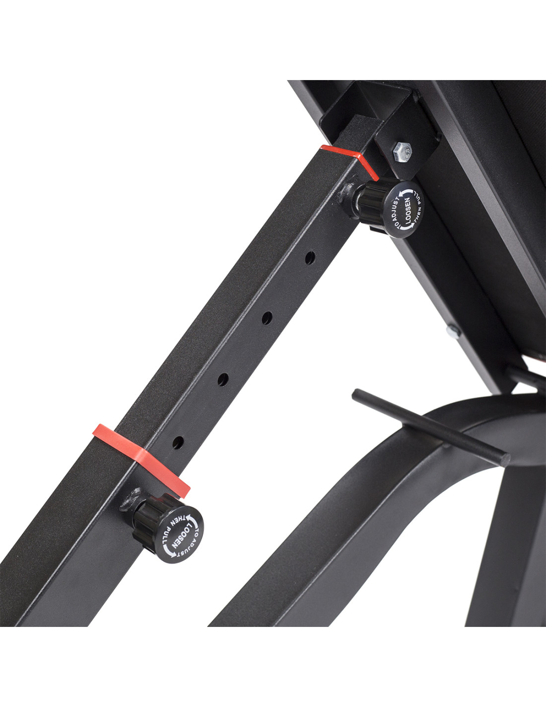 Тази пейка осигурява идеална стабилност по време на тренировка. Комфортът се осигурява от здравата пяна и модерната тапицерия с карбонова шарка, която се характеризира с повишена издръжливост. Специално очертаната конструкция стабилизира позицията на потребителя. Пейката разполага с напълно регулируема облегалка, която ви позволява да изпълнявате различни тренировки.
