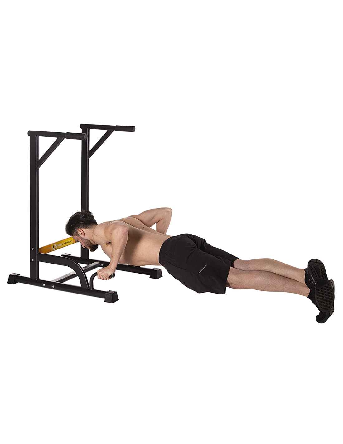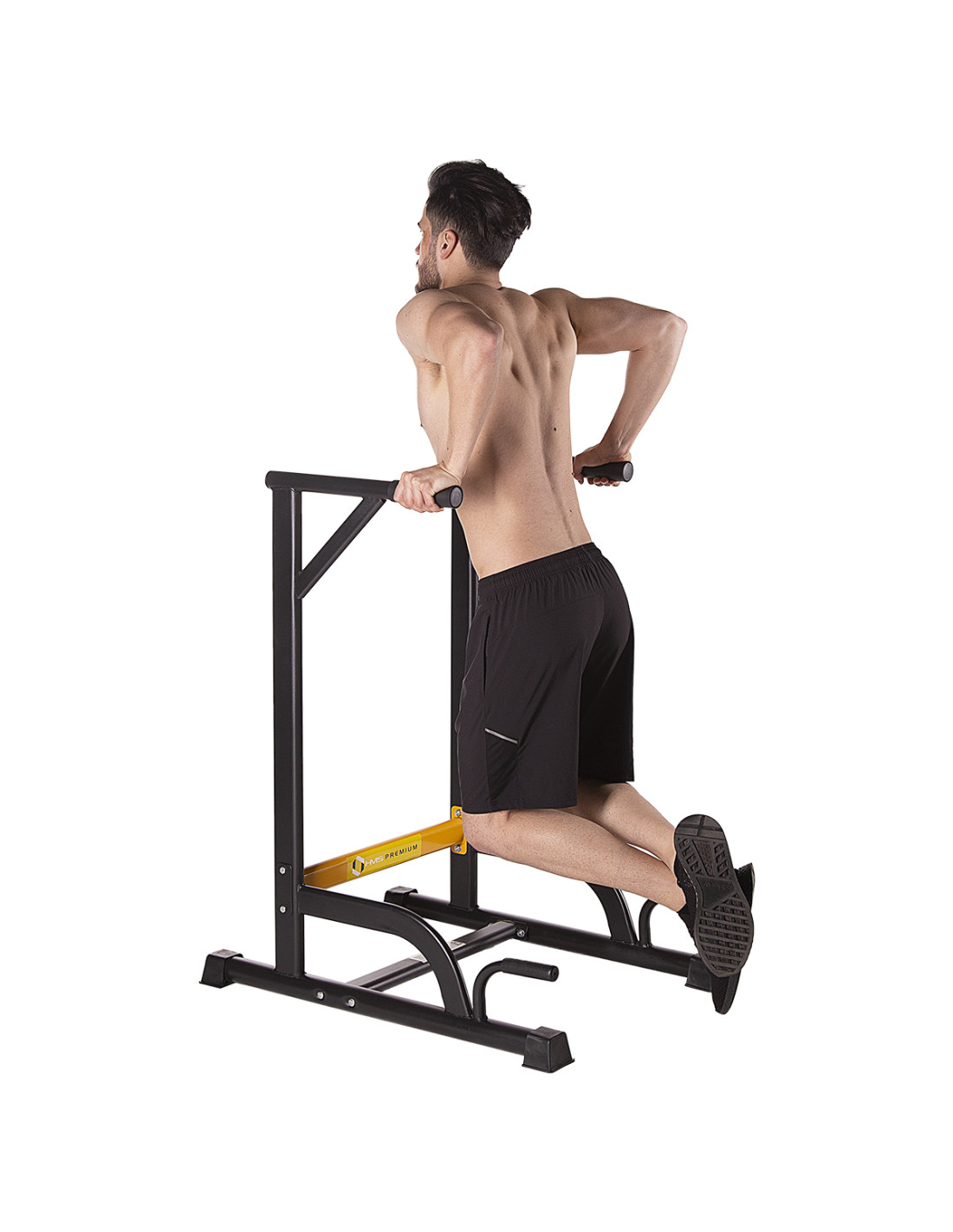 PWL8306 HMS PREMIUM е многофункционална електроцентрала. Използва се за изпълнение на лицеви опори (т.е. спадове или класически лицеви опори). Както паданията, така и класическите лицеви опори натоварват силно гръдните мускули, трицепсите и предните делтоиди. Използвайки долните дръжки, можете да правите много дълбоки лицеви опори. Това значително отпуска вашите мускули по време на всяко движение, което в крайна сметка води до по-бързо изграждане на мускулите. Използвайки горните дръжки, можете да изградите както гръдните си мускули, така и трицепсите, в зависимост от позицията на тялото. Навеждането напред по време на тренировка ще натовари най-много гръдните ви мускули. Стоенето изправено, от друга страна, се фокусира предимно върху трицепсите ви.