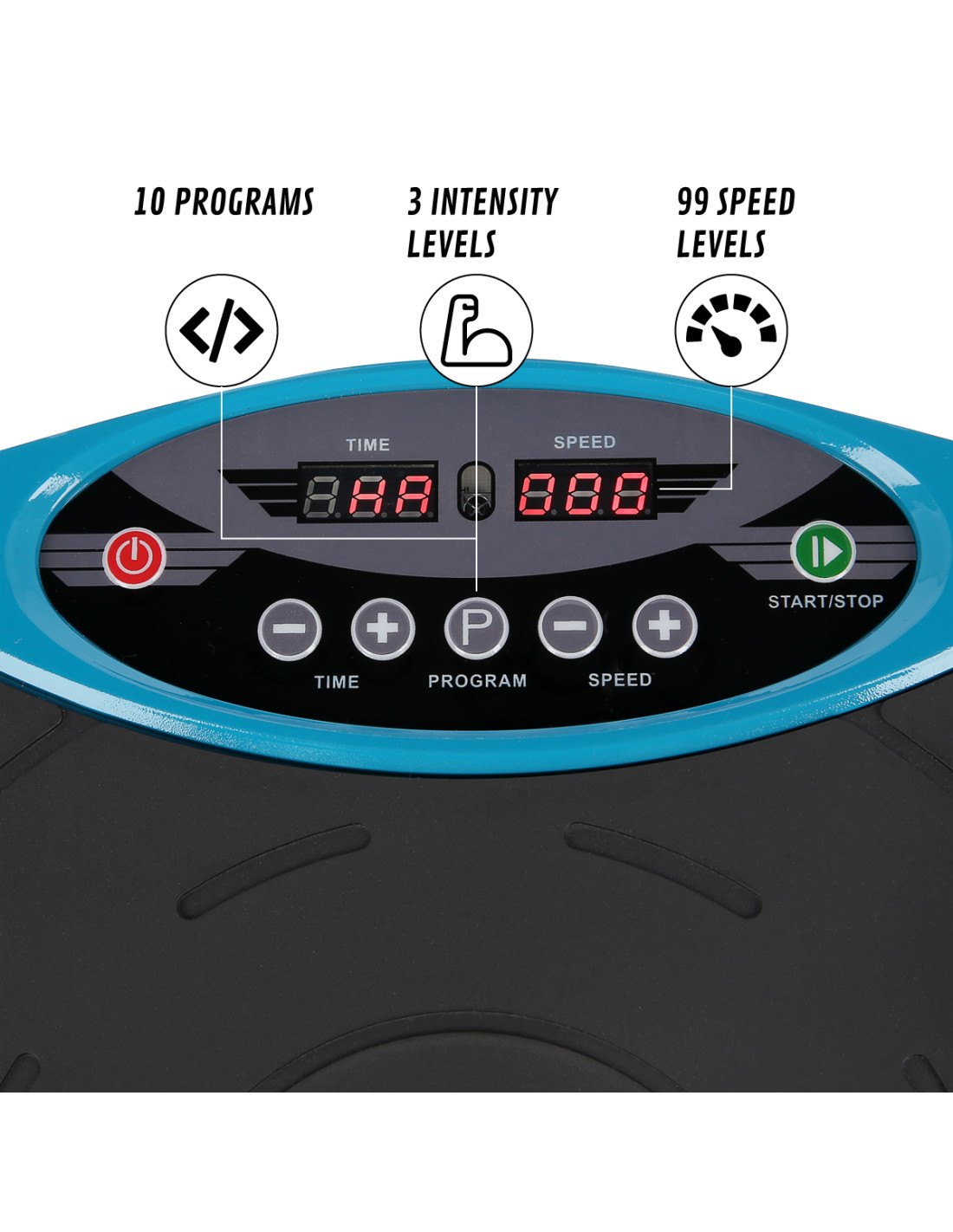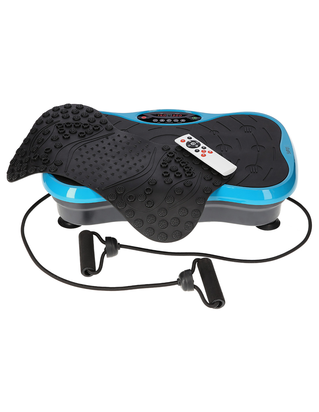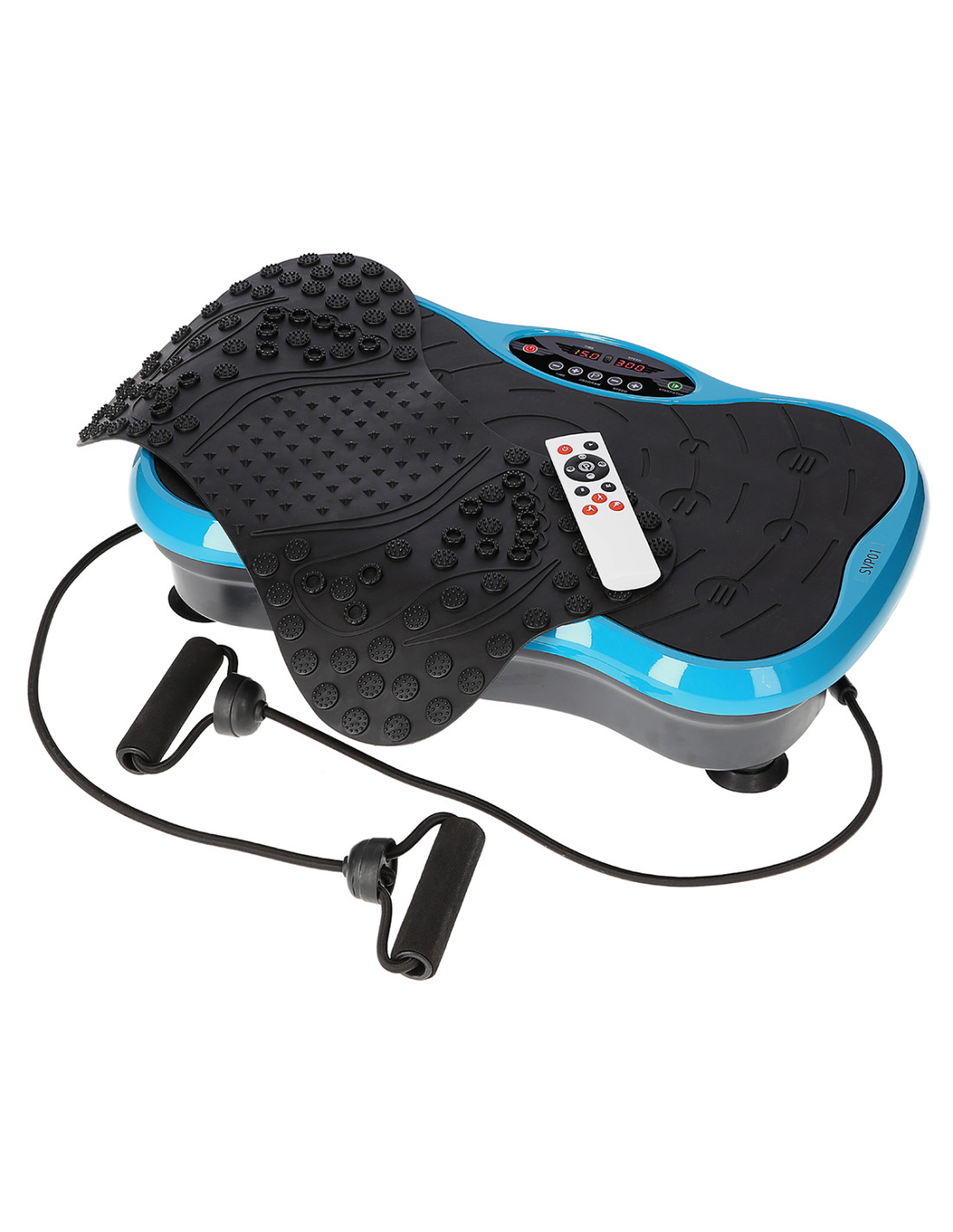 Вибрационната плоча ви позволява да тренирате на три нива на интензивност. Стоенето в центъра симулира ходене. Поддържането на краката ви по-близо едно до друго симулира джогинг, докато поддържането им по-широко симулира спринт. Устройството има 99 нива на скорост, което в комбинация с таймера на вибрационната плоча SVP01 ви позволява да регулирате настройките на продукта според вашите възможности. Комплектът включва съпротивителни ленти, които допълват вашата тренировка и добавят разнообразие. Тази вибрационна плоча също така подобрява кръвообращението, като подпомага възстановяването на мускулите и насърчава релаксацията. Друго предимство е постелката за акупресура, включена в комплекта. Тази постелка се поставя върху вибрационната плоча. Изграден е по иновативна система. Разполага с по-малки и по-високи масажни точки. Това ви позволява да контролирате масажа, като променяте позицията на краката си. Вибрациите и специалните масажни точки на постелката осигуряват идеален масаж на краката, като същевременно осигуряват пълна релаксация.