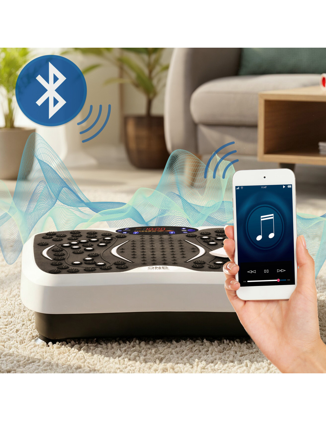 SVP08 One Fitness разполага с Bluetooth свързаност , което ви позволява да слушате любимата си музика директно през платформата по време на тренировка. Ясният контролен панел и включеното дистанционно управление осигуряват комфортна и интуитивна работа, без да прекъсвате тренировката си.