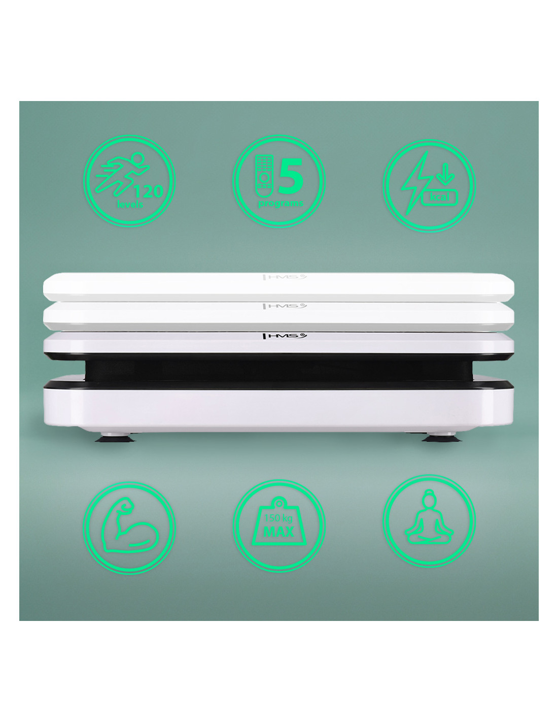 Стабилната конструкция на вибрационната платформа HMS Fitness осигурява безопасност и стабилност по време на тренировка. Максималното тегло на потребителя до 150 кг прави SVP09 подходяща за широк кръг потребители – както за жени, така и за мъже.